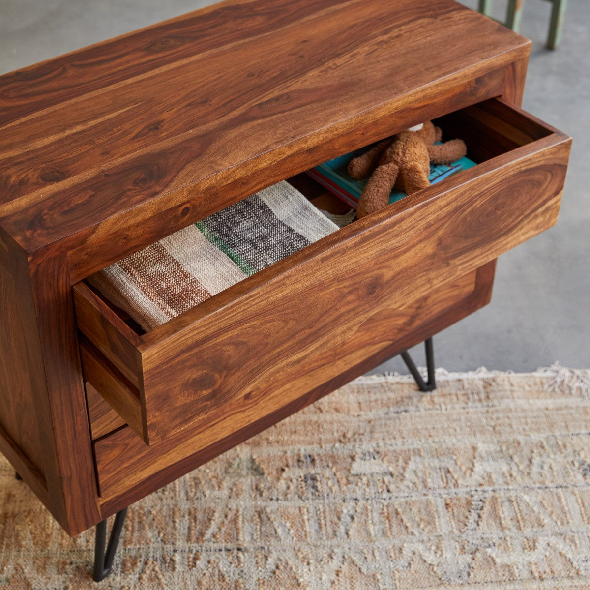 In de droomachtige massief palissander commode Bonnie kan uw kind zijn favoriete kleren, speelgoed, strips en kleine geheimpjes opruimen. Zo kan het zelf zijn spulletjes beheren en stap voor stap zelfstandiger worden.