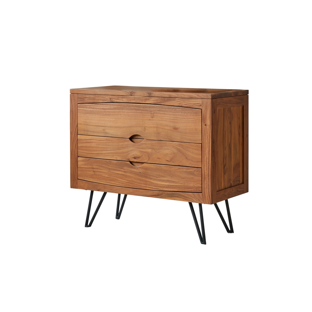 De even elegante als praktische ladekast Bonnie van massief acacia geeft uw kamer veel karakter. De ruime laden bieden voldoende opbergruimte voor nachtkleding of kleine kledingstukken. Wij houden van de metalen poten die het ontwerp optisch verlichten en de sobere lijnen waardoor deze ladekast in alle decoratiestijlen past.