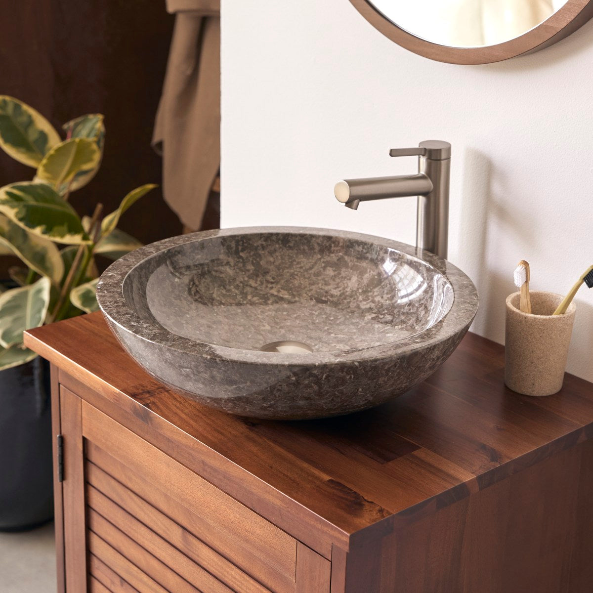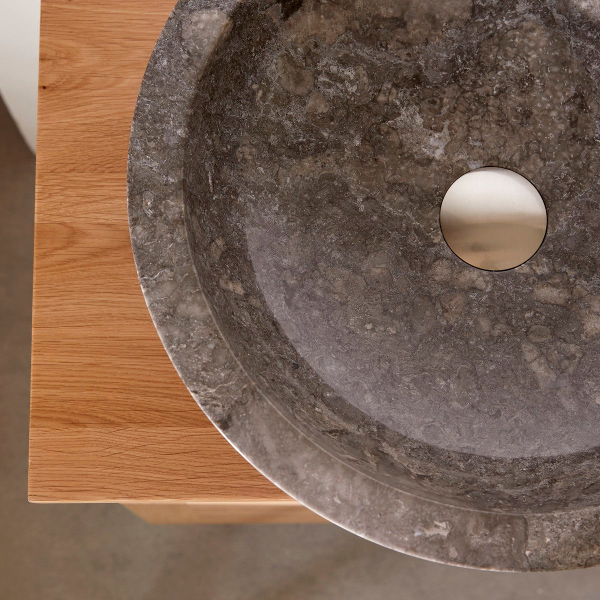 U valt gegarandeerd voor de ronde vorm en het eigentijdse design van deze marmeren wastafel Calypso Grey.