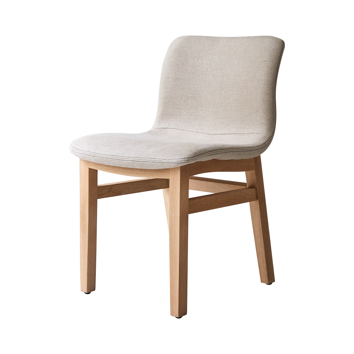 De Linen stoel past in elk type interieur dankzij de sobere lijnen. Het model is ook verkrijgbaar in leer.