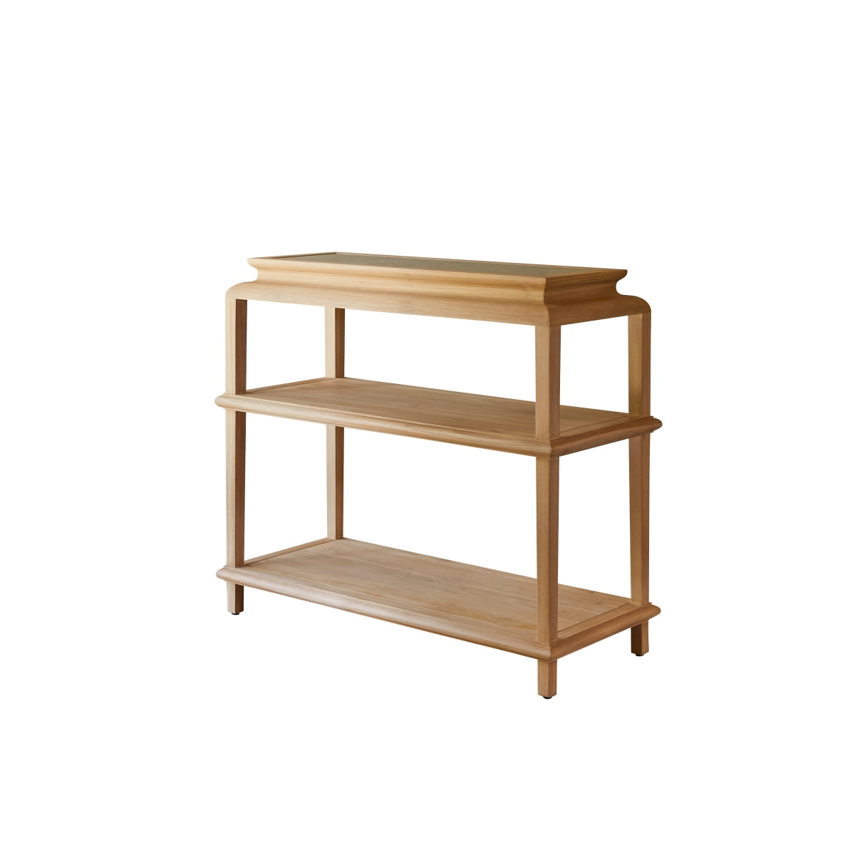 * 3 planken: B 92 x D 32 cm 2 open nissen (hoogte bovenste nis: 24 cm - hoogte onderste nis: 40 cm). Hoogte poten: 8 cm.