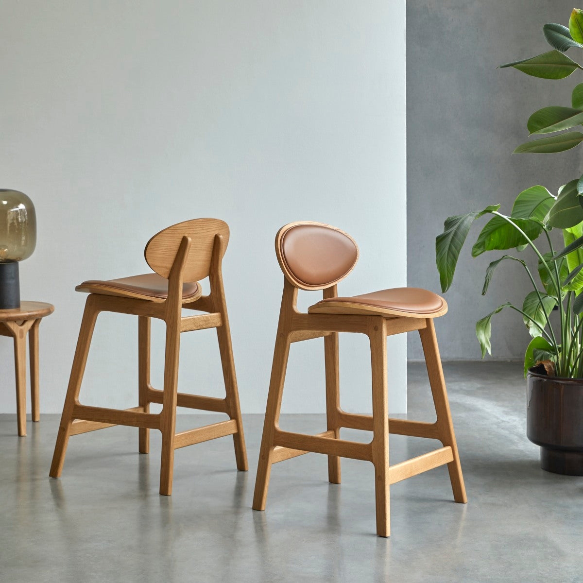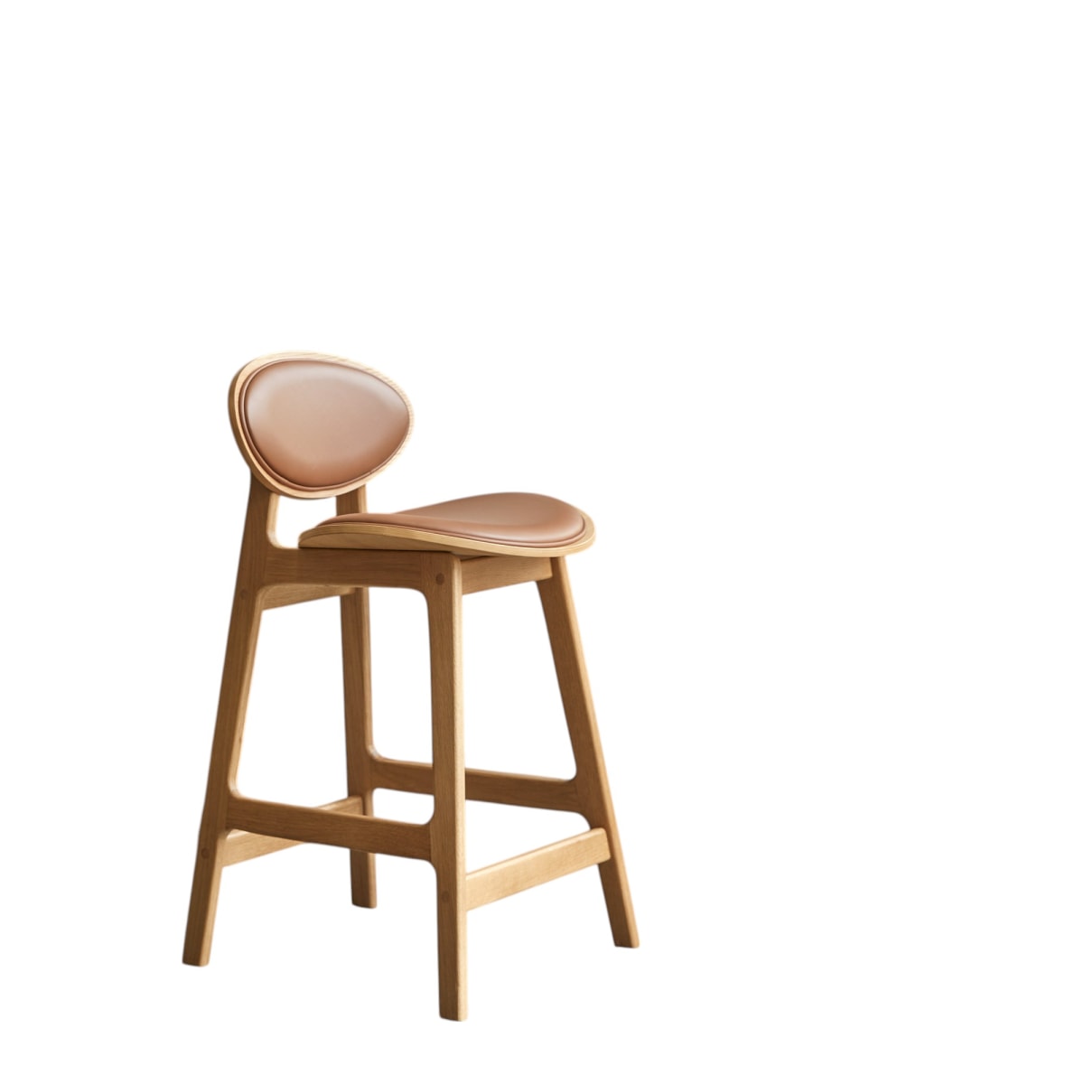 De Maia counterstoel van massief eikenhout en leer combineert Scandinavische elegantie met comfort. De strakke lijnen en kompaspoten geven uw huis een lichte, moderne uitstraling. Hij is ideaal voor een kookeiland of aanrechtblad en past bij alle stijlen, van eigentijds tot gezellig.