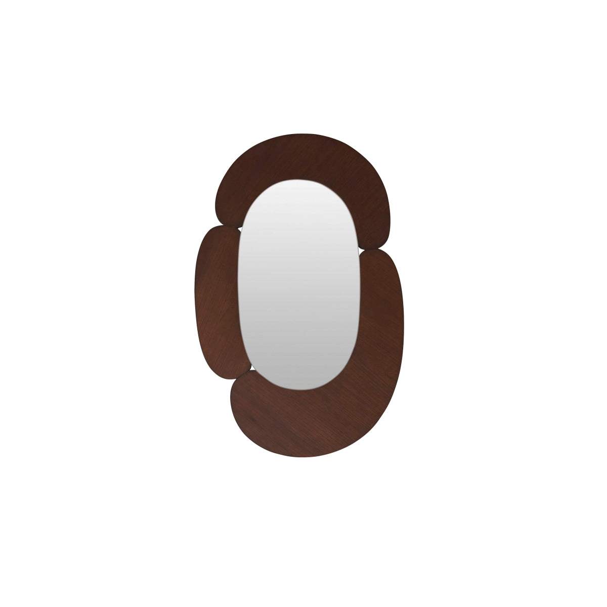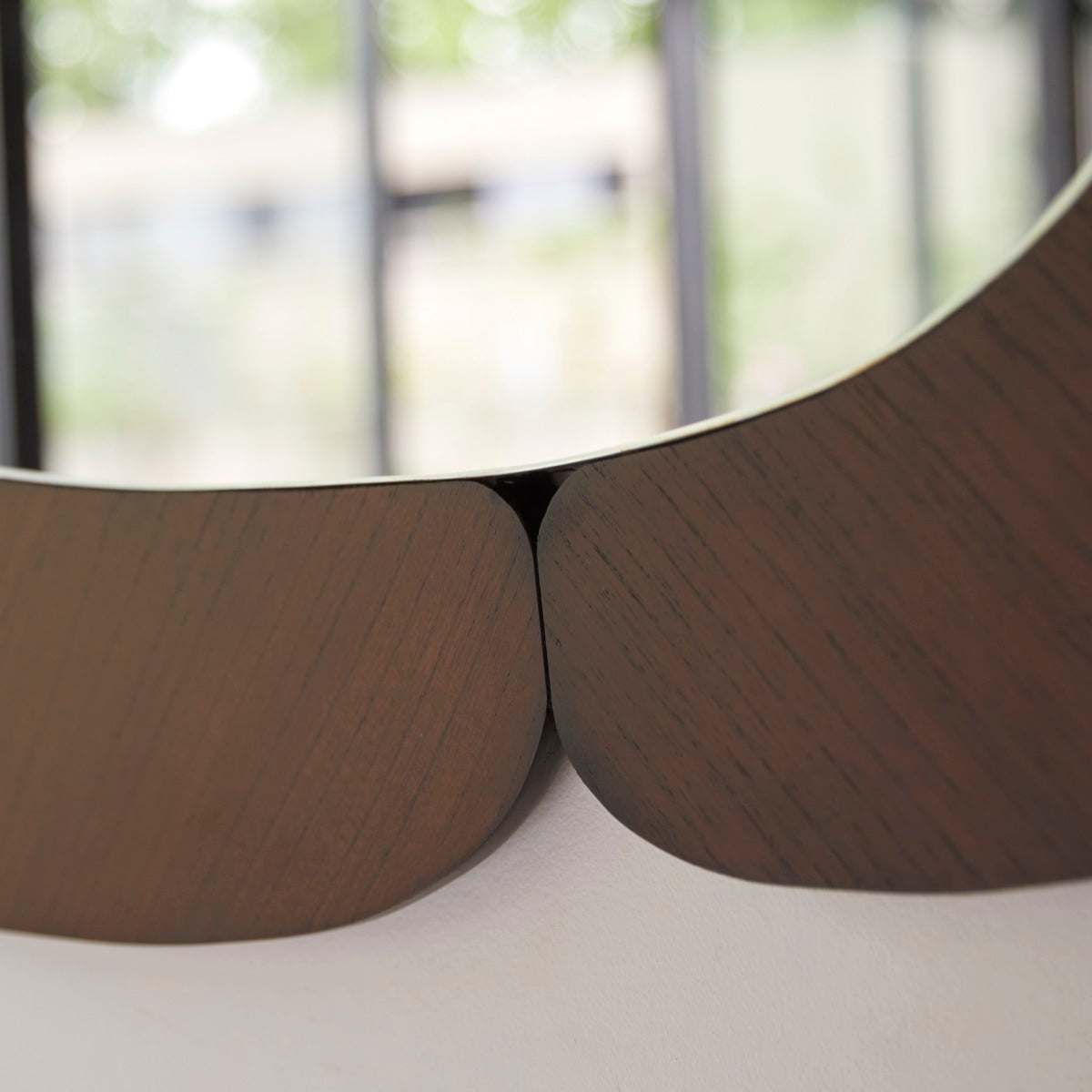 De ovale spiegel Eda van massief mindihout is ook verkrijgbaar in een horizontale versie. Hij wordt ook aangeboden in licht mindihout, in een horizontale of verticale vorm.