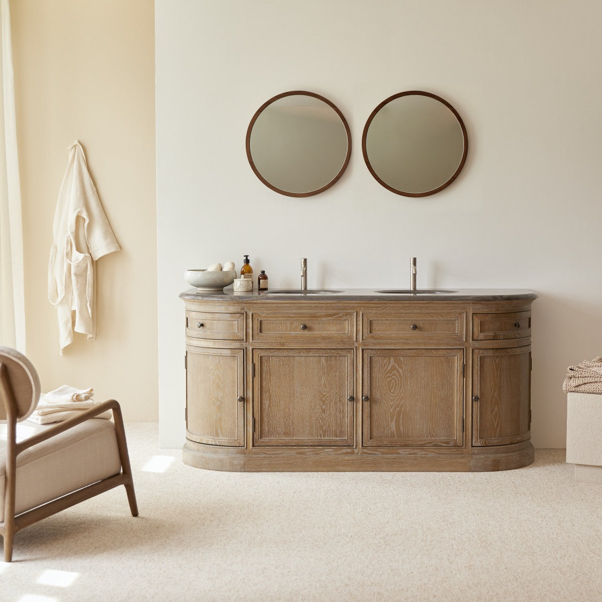 Badmeubel Louise in FSC® eiken en steen, een meubel met dubbele wastafel van het merk Tikamoon!