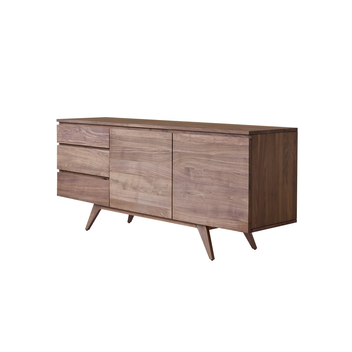 Het buffet Esmée van massief notenhout biedt alle voordelen van een meubelstuk dat ons in het dagelijks leven vergezelt: nobel hout, mooie lichtreflecties en nerven en een royale opbergruimte. De sobere lijnen, de schuine poten en de matte afwerking zijn ook erg mooi.