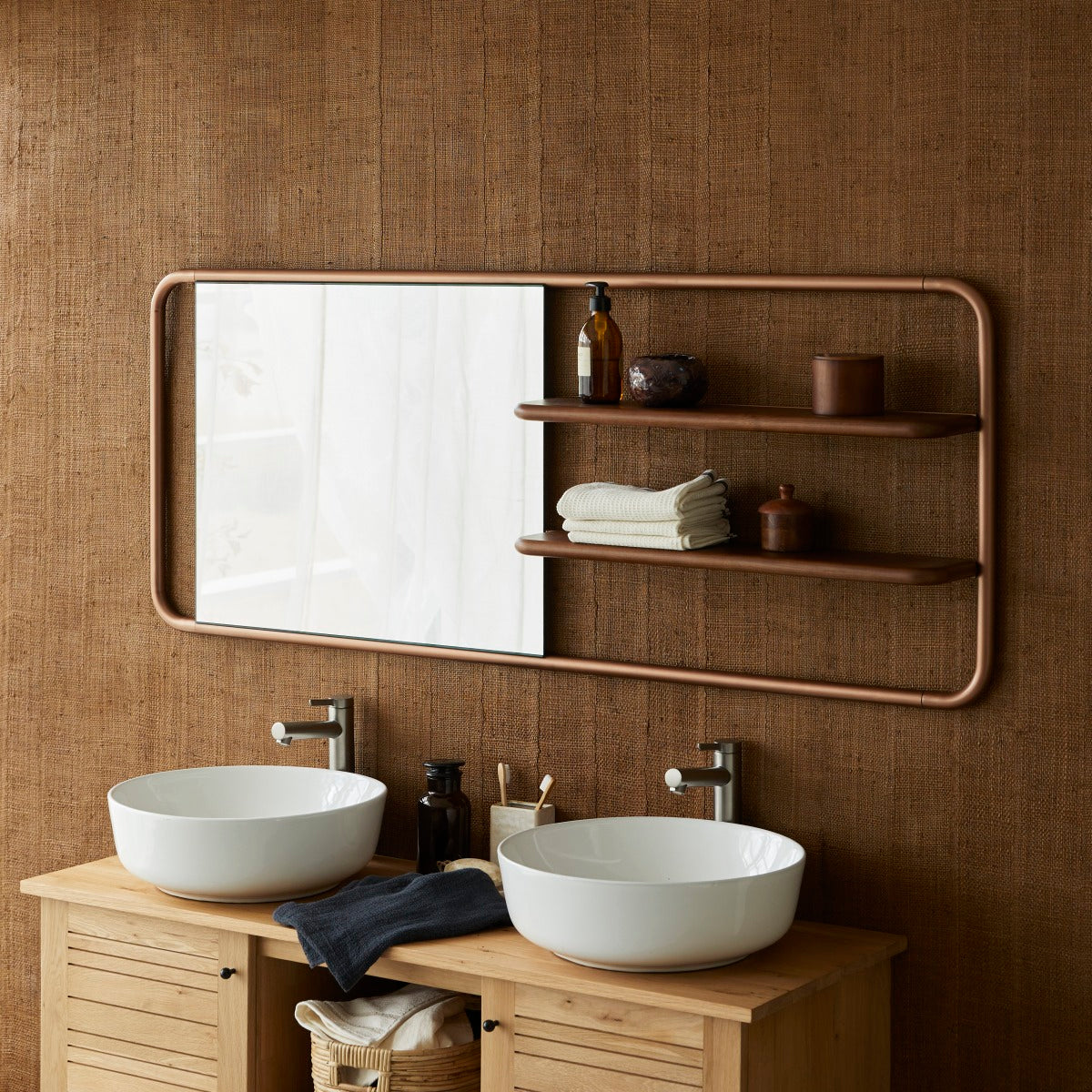 Het Félicie spiegelrek van walnoothout en messing is de perfecte aanvulling op de meubels van onze Actuel collectie.