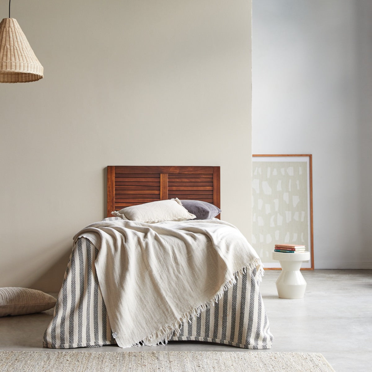 Het Loggia hoofdbord in massief acacia van 90 cm voelt zich met zijn tijdloze ontwerp net zo thuis in volwassen- als kinderkamers. De shutterstijl zorgt voor extra authenticiteit en natuurlijke charme. Het is gelakt voor eenvoudig onderhoud, past bij alle soorten eigentijds meubilair en is eenvoudig te installeren.