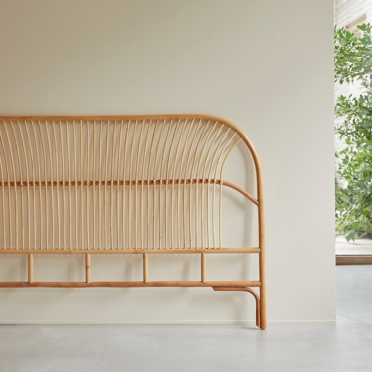 Het Colette hoofdbord in rotan van 180 cm, ontworpen voor kingsize bedden, heeft een elegant patroon van verticale lijnen voor een luchtige sfeer in de slaapkamer. Met zijn afgeronde hoeken en natuurlijke ontwerp past het gemakkelijk bij verschillende stijlen en creëert het een rustgevende, verfijnde sfeer. Het is niet alleen aantrekkelijk, slijtvast en lichtgewicht, maar ook beschermd door een laklaag voor eenvoudig onderhoud.