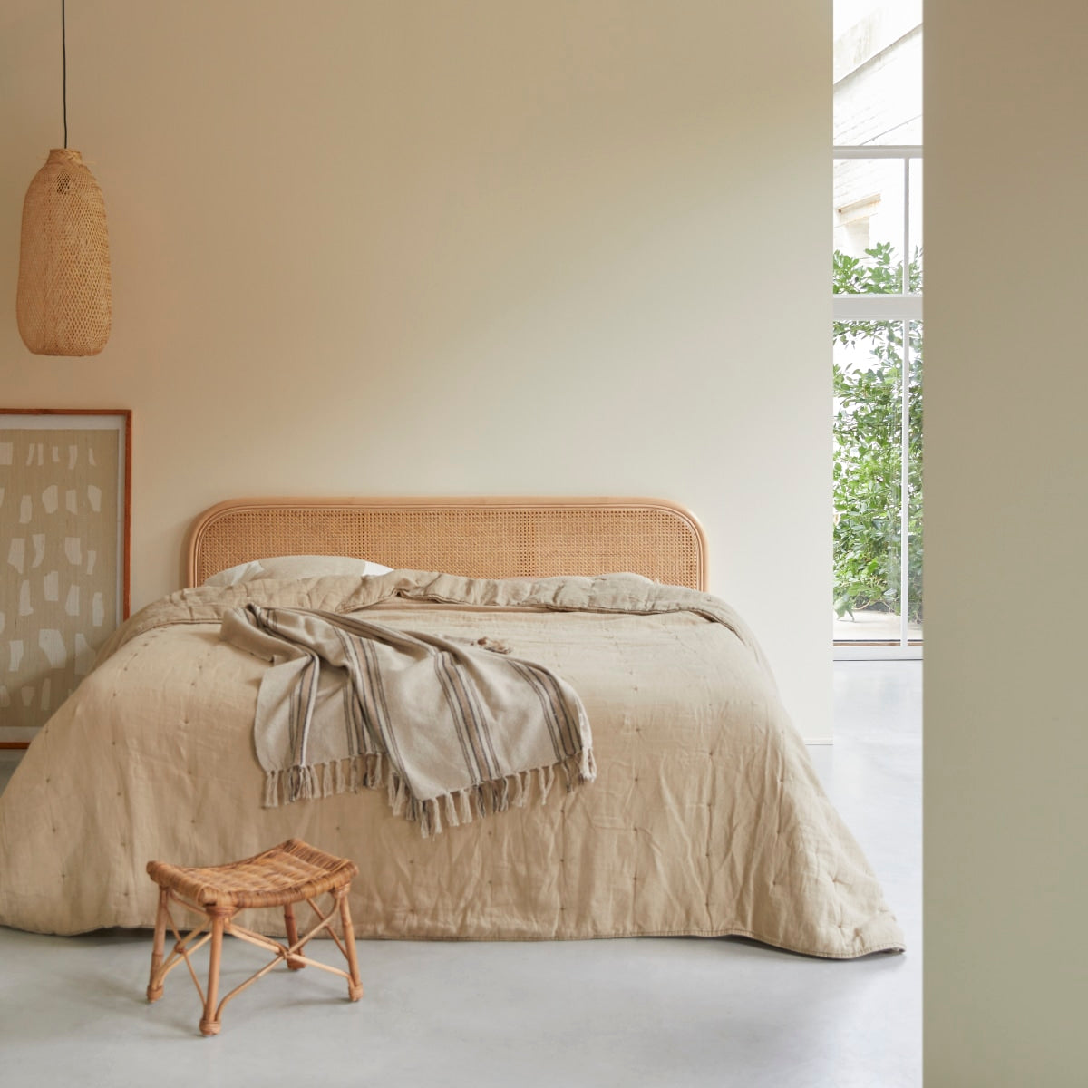 Het Joséphine hoofdbord van 180 cm in 100% natuurlijk gevlochten rotan maakt het verschil met zijn afgeronde hoeken en natuurlijke charme. Het eenvoudige, elegante ontwerp past bij elke decoratiestijl en geeft elke slaapkamer een warme uitstraling. De laklaag staat garant voor dagelijks onderhoudsgemak.