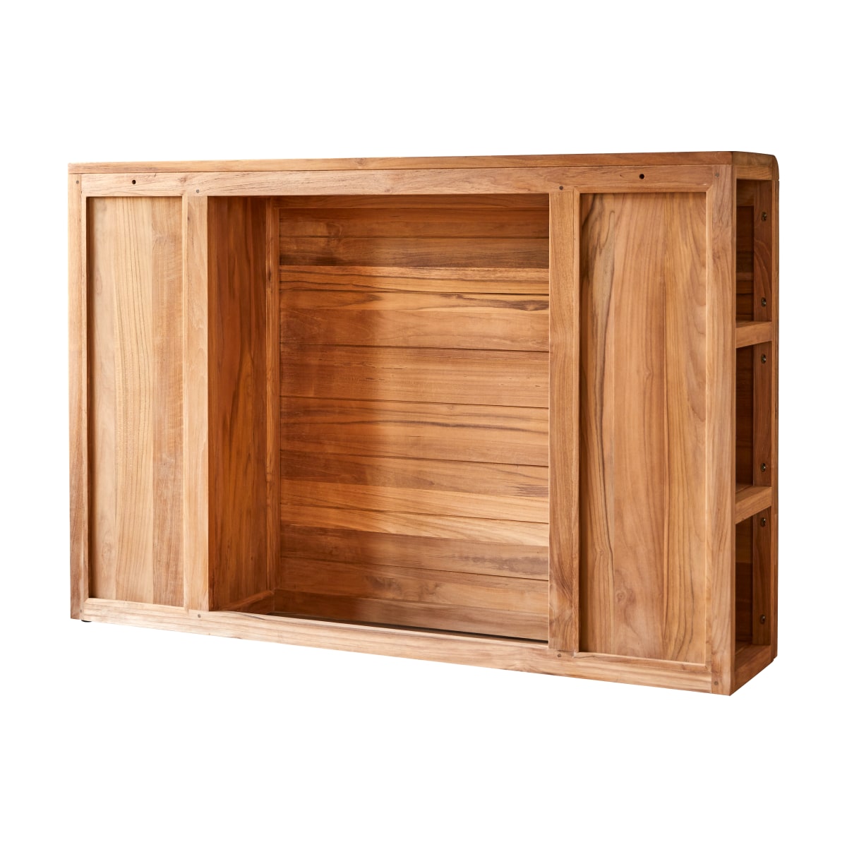 Het bed wordt een boshut of de schuilplaats van een geheim agent! Het Bertie-hoofdeinde van massief teakhout laat niet meteen alles van zichzelf zien: Schatten kunnen aan de zijkant worden verstopt, aanwijzingen kunnen worden verborgen of er kan gewoon een kleine plekje worden ingeruimd voor de favoriete knuffels, zodat we ze 's nachts snel bij de hand hebben als een nare droom ons uit onze slaap wekt! Oudere kinderen bergen hier graag hun boeken op of - als de ouders het toestaan - een smartphone of tablet. Het massief teakhouten hoofdeinde Bertie heeft een mooie natuurlijke look, verkregen door het materiaal licht te borstelen. Het hout heeft het keurmerk FSC®, de garantie dat het afkomstig is uit verantwoord beheerde bossen.