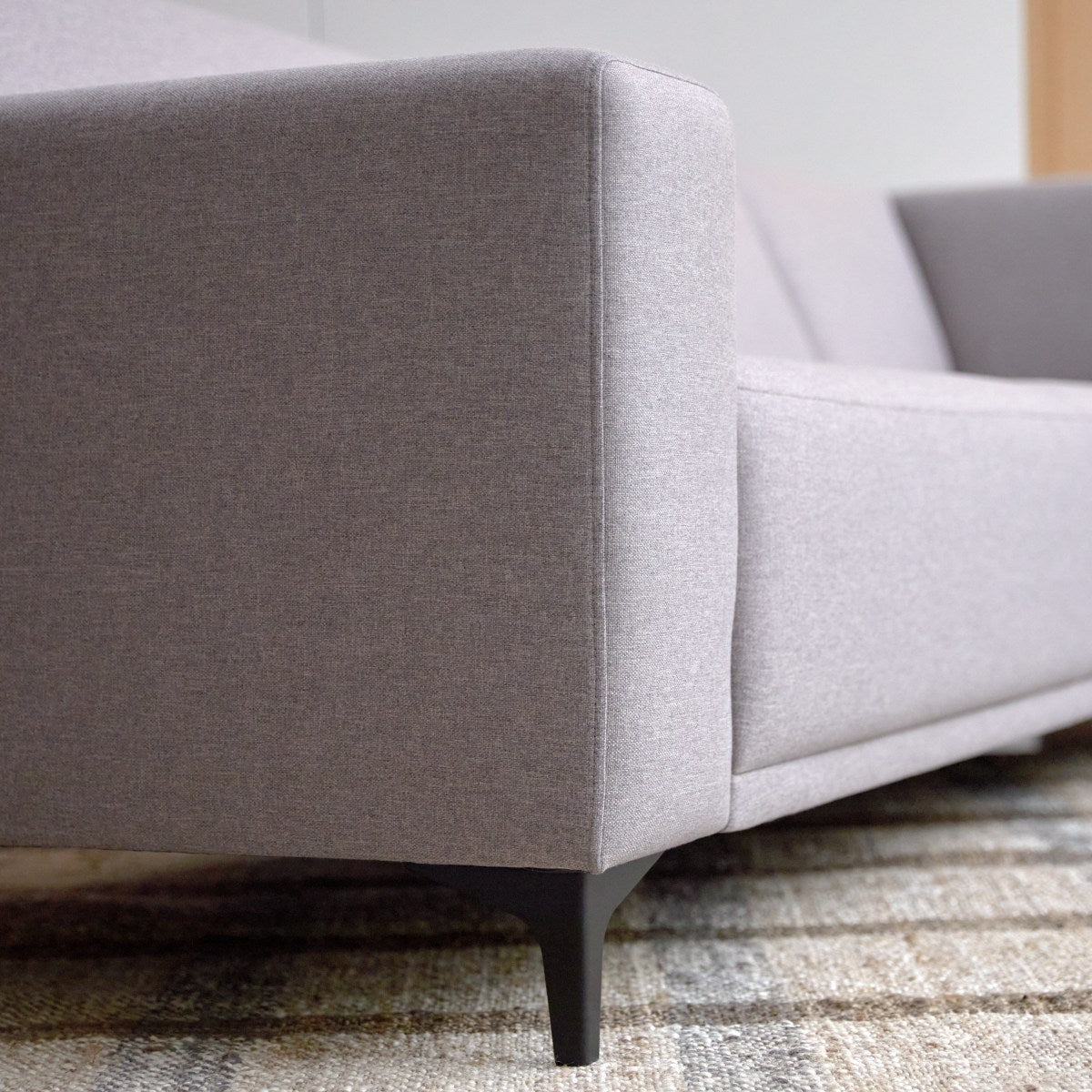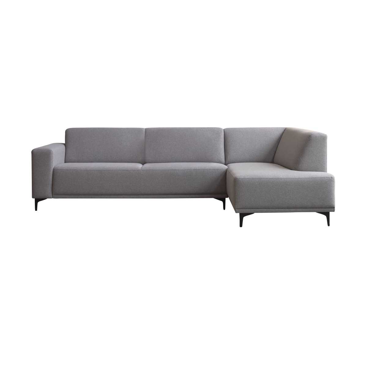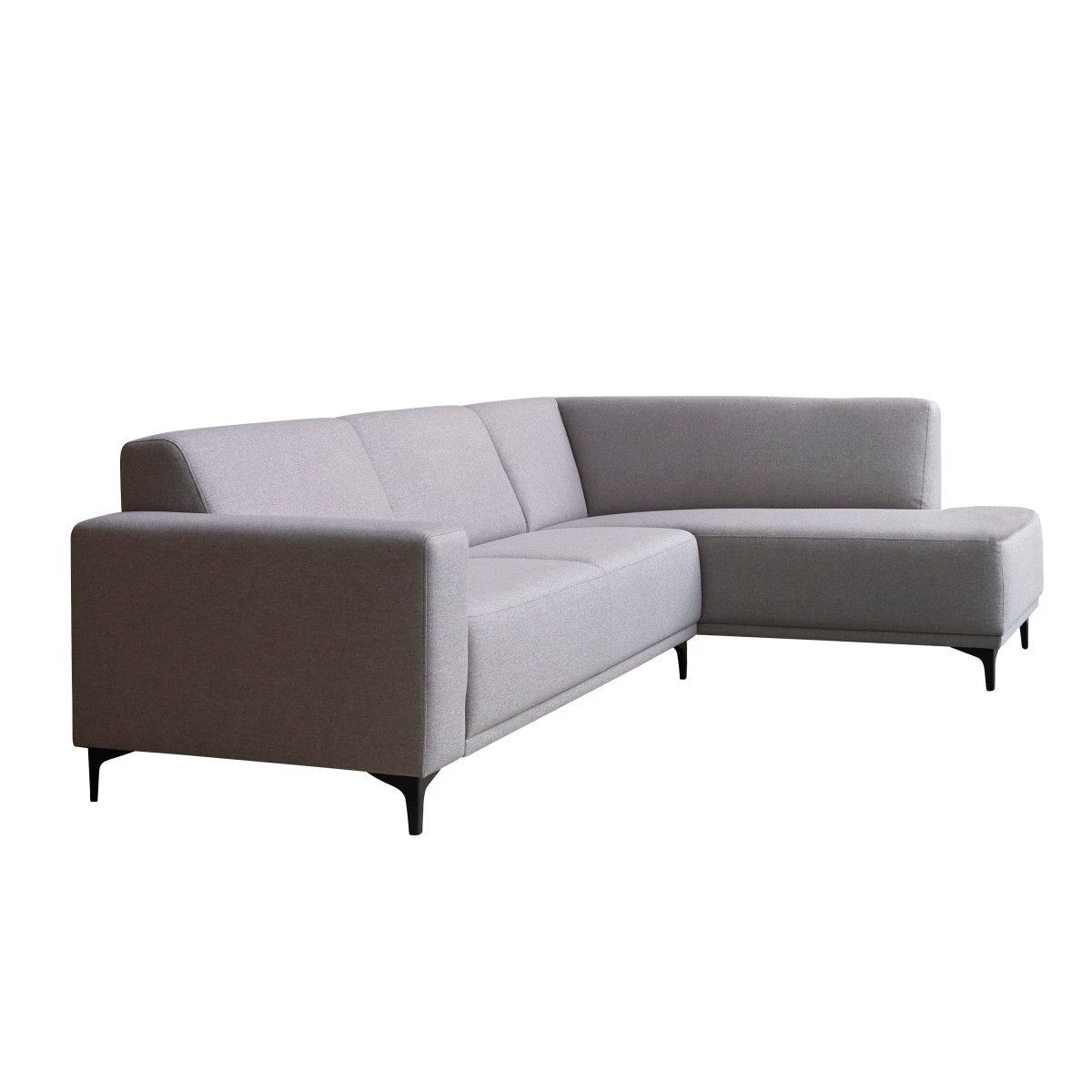 Een moderne look en ingetogen elegantie kenmerken de hoekbank rechts Lars. Dit comfortabele middelpunt in de woonkamer is ideaal voor gezellige avonden met familie en vrienden en is gemaakt van een fijn geweven stof die zacht en duurzaam is en OEKO-TEX® gecertificeerd is, de garantie dat het geen schadelijke stoffen of chemicaliën bevat. U zult dol zijn op de grijze kleur, die past bij elke interieurstijl, en de slanke metalen poten, die zorgen voor de finishing touch.Vul hem zeker ook aan met onze voetenbank Lars die erbij past, een paar kleurige kussens of een plaid, enz.