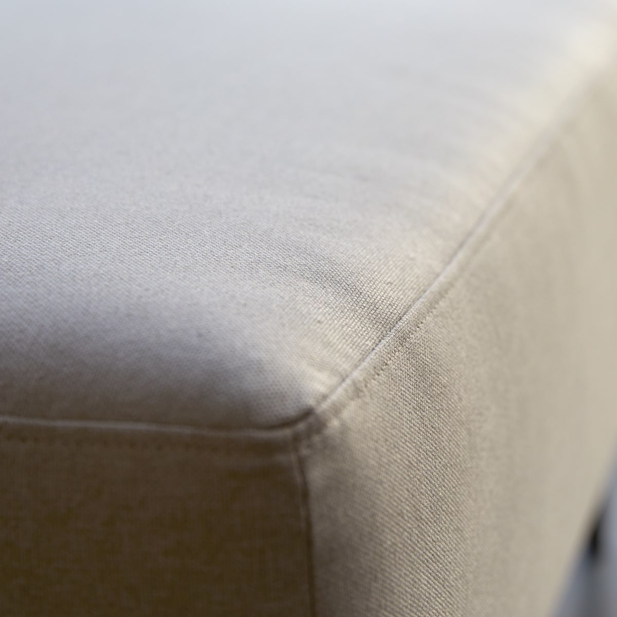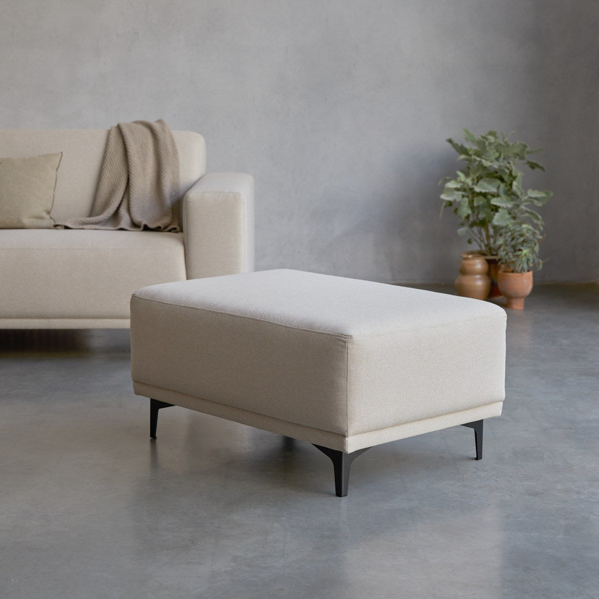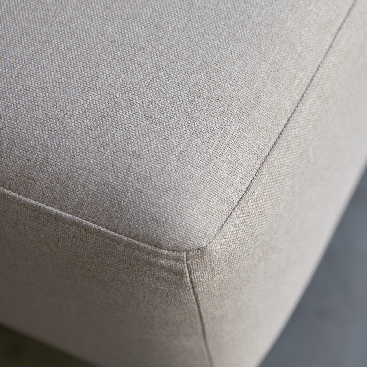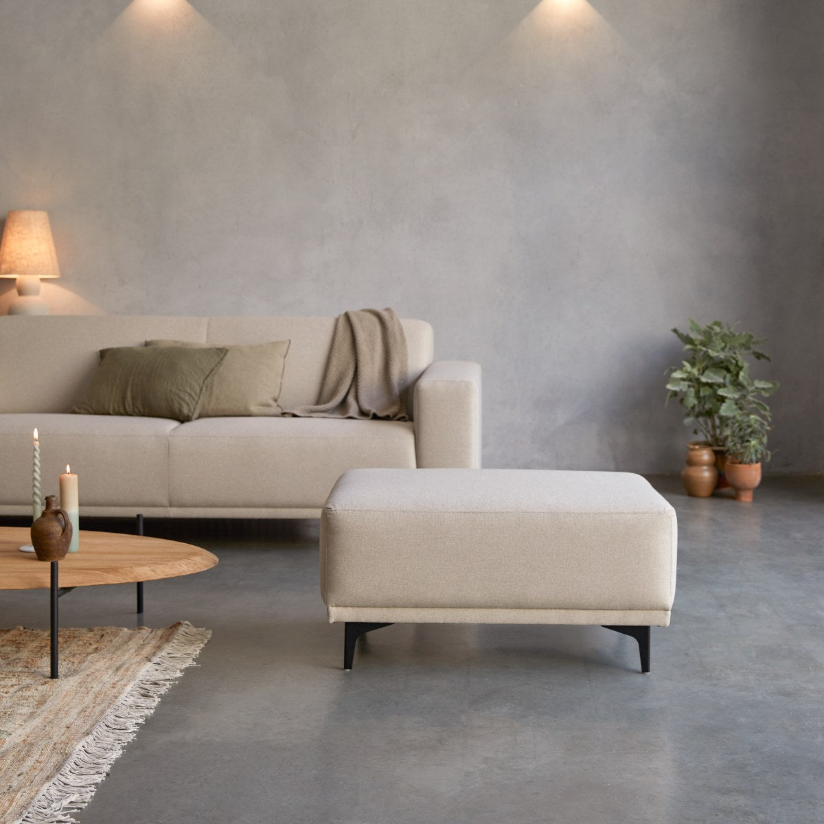 De voetenbank Lars ecru stof kan worden gecombineerd met hoekbanken en de rechte bank uit hetzelfde assortiment.