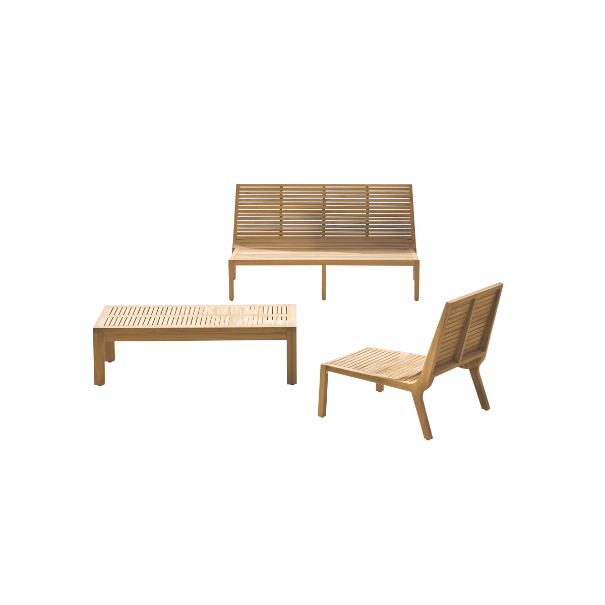 De Teo loungeset van FSC®-gecertificeerd massief teakhout is samengesteld uit een salontafel, een 2-persoons zitbank en een fauteuil van het merk Tikamoon! Perfect voor een gezellig moment in de buitenlucht.