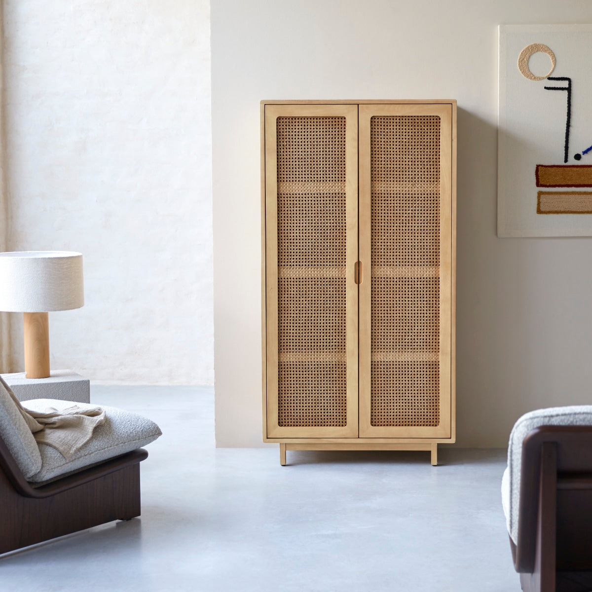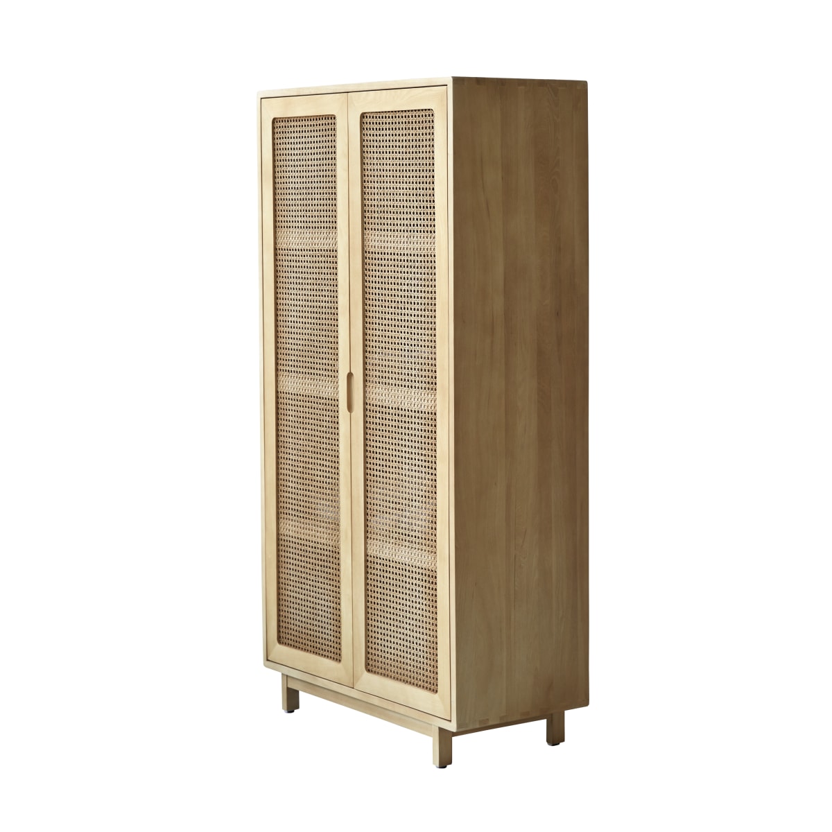 De Luis kast van massief iepenhout en riet brengt gezelligheid in de slaapkamer: het riet staat in de schijnwerpers en wordt gecombineerd met de edelheid van mooi hout! Wij houden van de traditionele zwaluwstaartverbinding en de ruime opslagcapaciteit. Deze elegante kledingkast is geschikt voor kleding en beddengoed. In de woonkamer of in de eetkamer is dit meubelstuk perfect voor servies en tafellinnen.