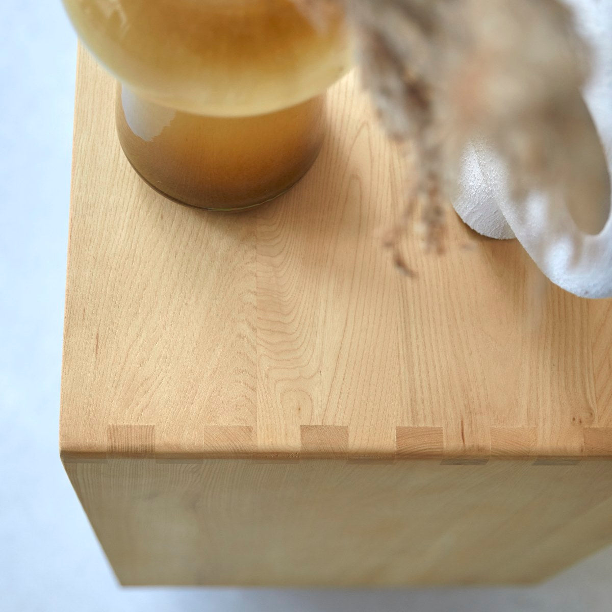 De Luis ladekast in massief iepenhout en riet is gemaakt van hout dat is behandeld met beschermende olie en op traditionele wijze in elkaar gezet met een zwaluwstaartverbinding.