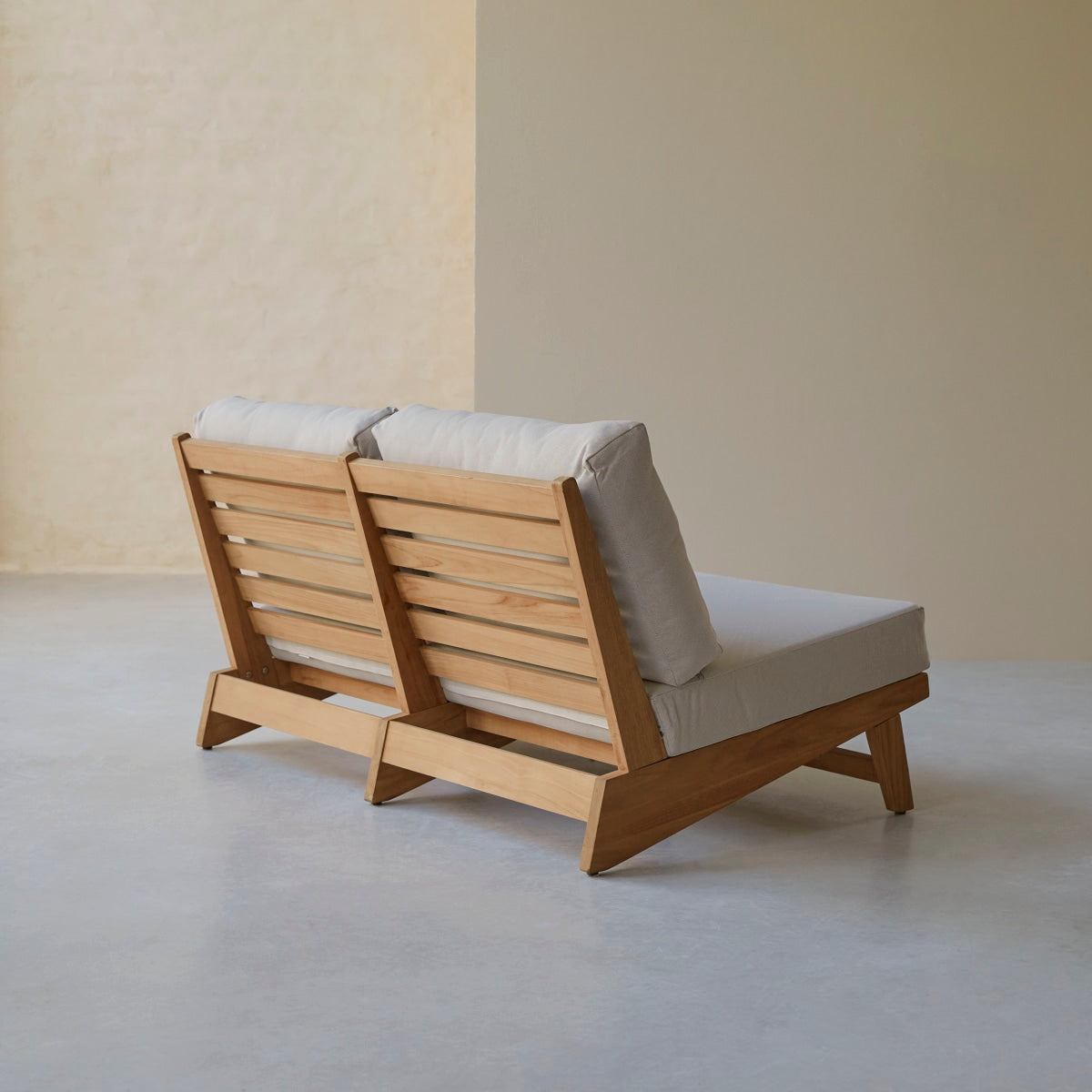 Natuurlijke elegantie, een nog stijlvoller licht verlaagd design, behaaglijk comfort: massief teakhouten bankje Olia heeft het allemaal voor u! In combinatie met fauteuil Olia van massief teakhout en massief teakhouten salontafel Olia is het bankje ideaal voor een gezellige woonkamer boordevol charme.
