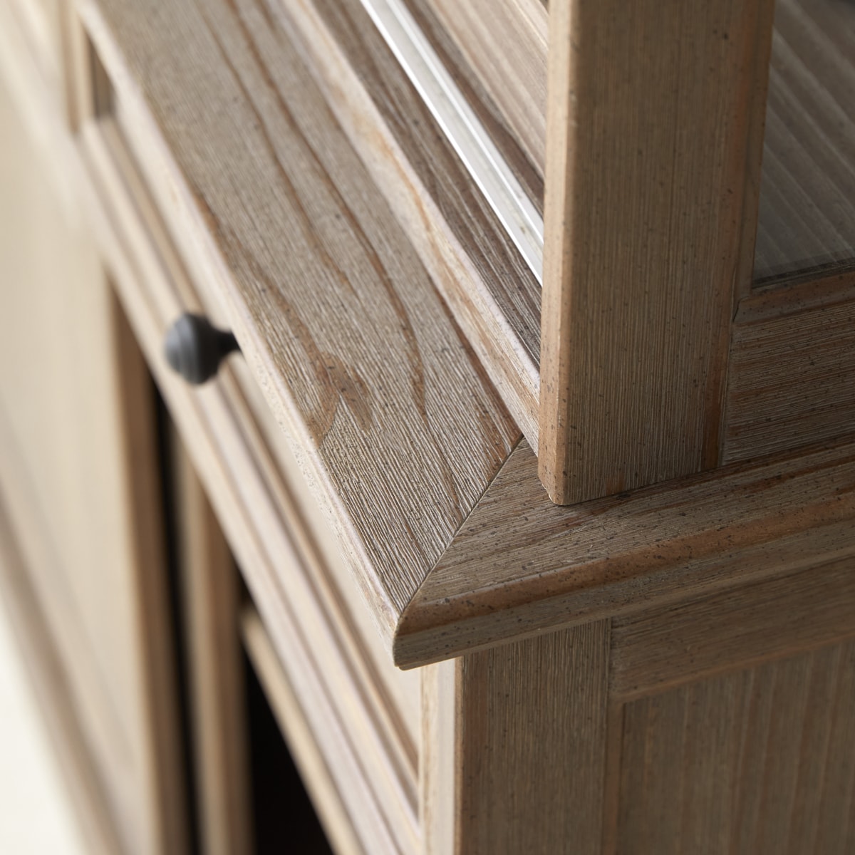 De Roma massief grenen buffetkast combineert natuurlijke charme met verantwoord bosbeheer dankzij het FSC®-gecerificeerde hout. De gebeitste en gelakte afwerking maakt onderhoud eenvoudig en laat het hout mooi uitkomen. Dankzij de glazen deur is uw servies zichtbaar en wordt de opbergruimte geoptimaliseerd.