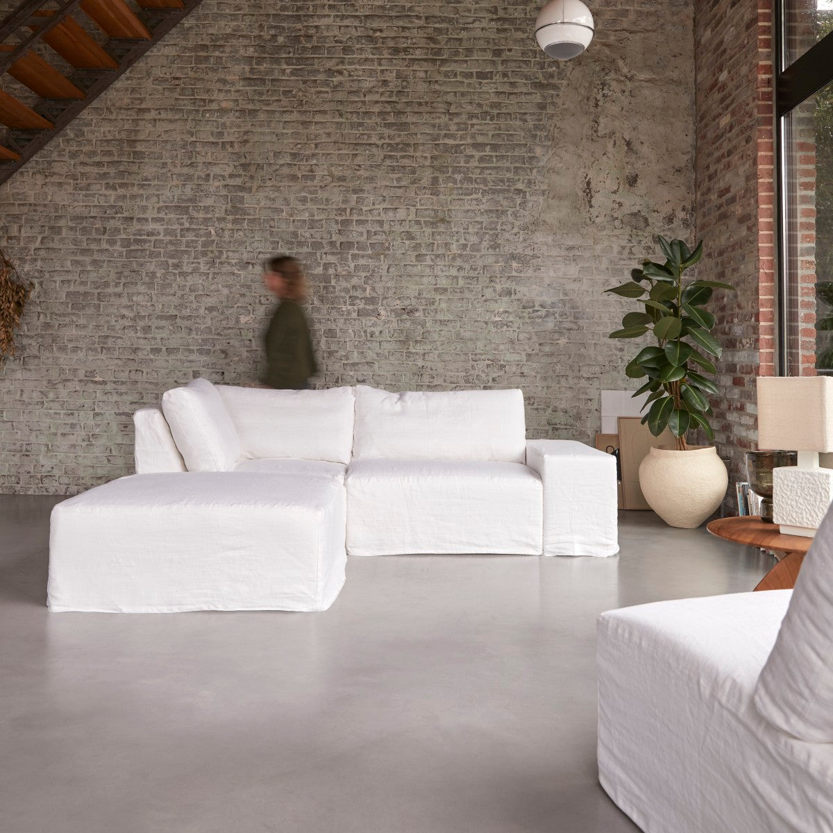 Tikamoon - Modulaire hoekbank in wit linnen met chaise longue Nils, 2-zit