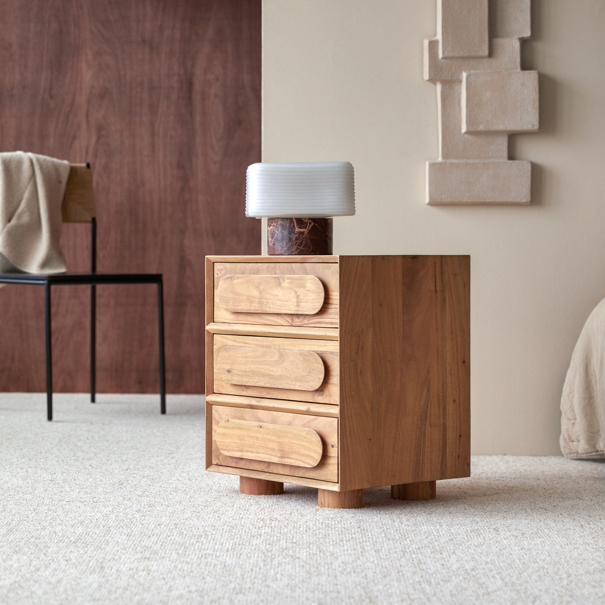 Kies voor het Olga nachtkastje van massief acaciahout met 3 lades.