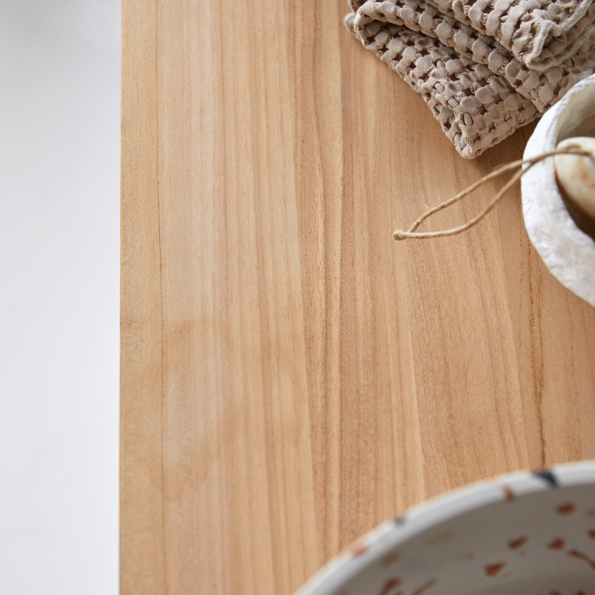 Het massief teakhouten Jonàk opbergmeubel combineert een Scandinavisch design met een royale opbergcapaciteit, voorzien van lades en vakken voor handdoeken en accessoires.Afhankelijk van uw behoeften kunt u het gebruiken met 2 wastafels, een luierplank of als slaapkamermeubel.Dit strakke, warme meubel is ontworpen om lang mee te gaan en past in elk interieur.