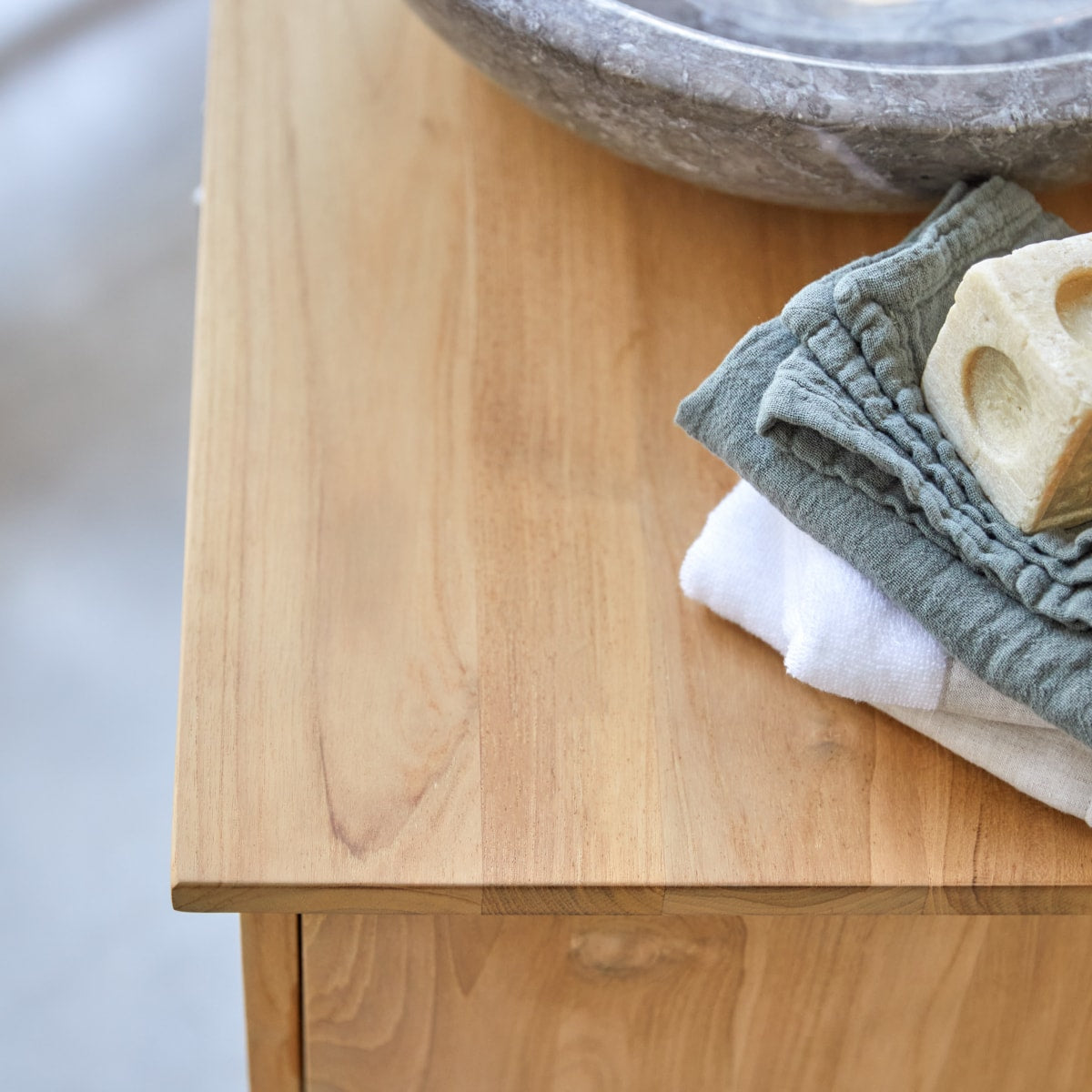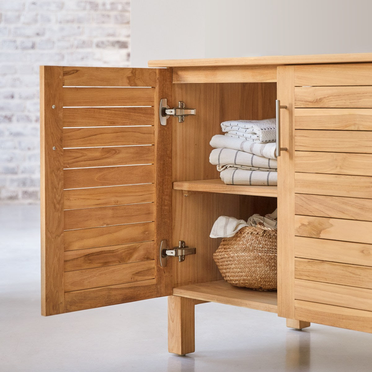 Het massief teakhouten Soho opbergmeubel combineert natuurlijke elegantie, een royale opbergcapaciteit en een eigentijds ontwerp met een lattenfront. Afhankelijk van uw behoeften kunt u het aanpassen tot slaapkamermeubel of wastafelmeubel. Het is verkrijgbaar in verschillende maten en in massief eikenhout, voor duurzaamheid met tijdloze charme.