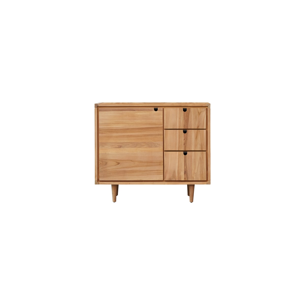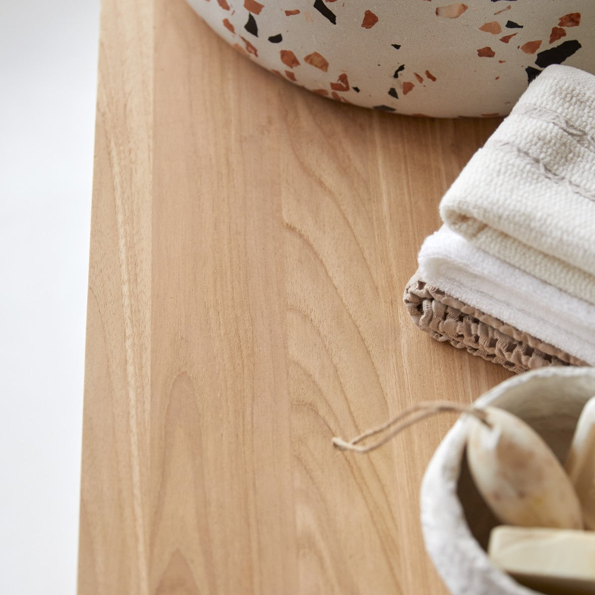 Het massief teakhouten Jonàk opbergmeubel met hedendaags Scandinavisch ontwerp is buitengewoon functioneel. Dit mooie en tegelijke praktische meubel biedt heel wat opbergruimte voor handdoeken, schoonheidsproducten en accessoires. Afhankelijk van uw behoeften kunt u het gebruiken met een wastafel of luierplank.