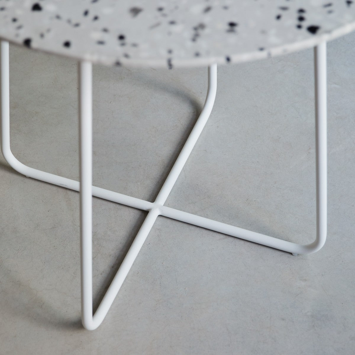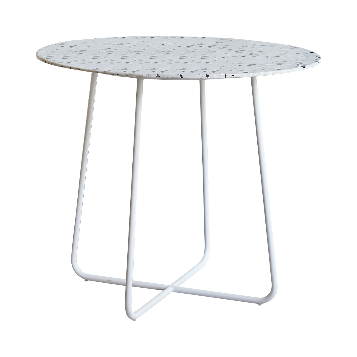 De ronde tafel Elio white van premium terrazzo en metaal, rond en vol karakter, zal uw keuken of eetkamer opvrolijken. We houden van de zachte lijnen van het witte onderstel van gegalvaniseerd ijzer en het hoogwaardige terrazzo-bovenblad met schitteringen dat erg in de mode is in moderne interieurs. Prettig in het gebruik, want het kan worden schoongeveegd met een vochtige spons en blijft dag na dag mooi...