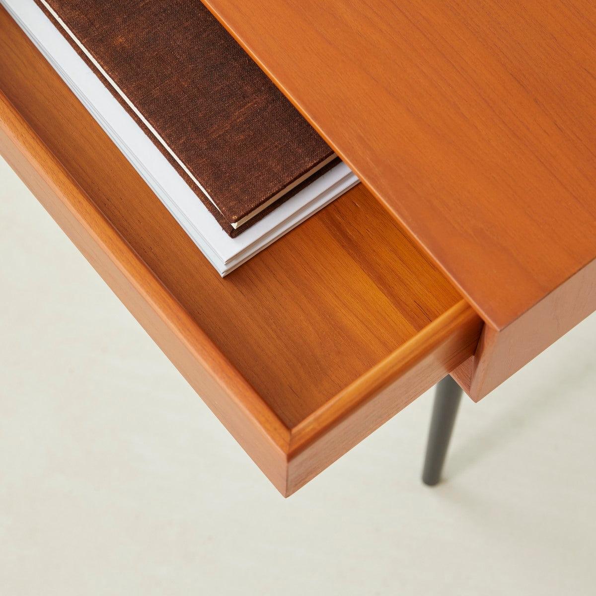 Het Simen teakhouten nachtkastje wordt een bijzettafel in de gang of werkkamer. Of een mooie plantentafel in de hoek van de woonkamer of eetkamer.