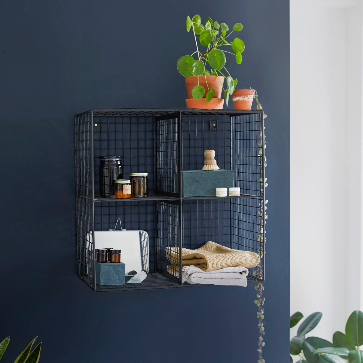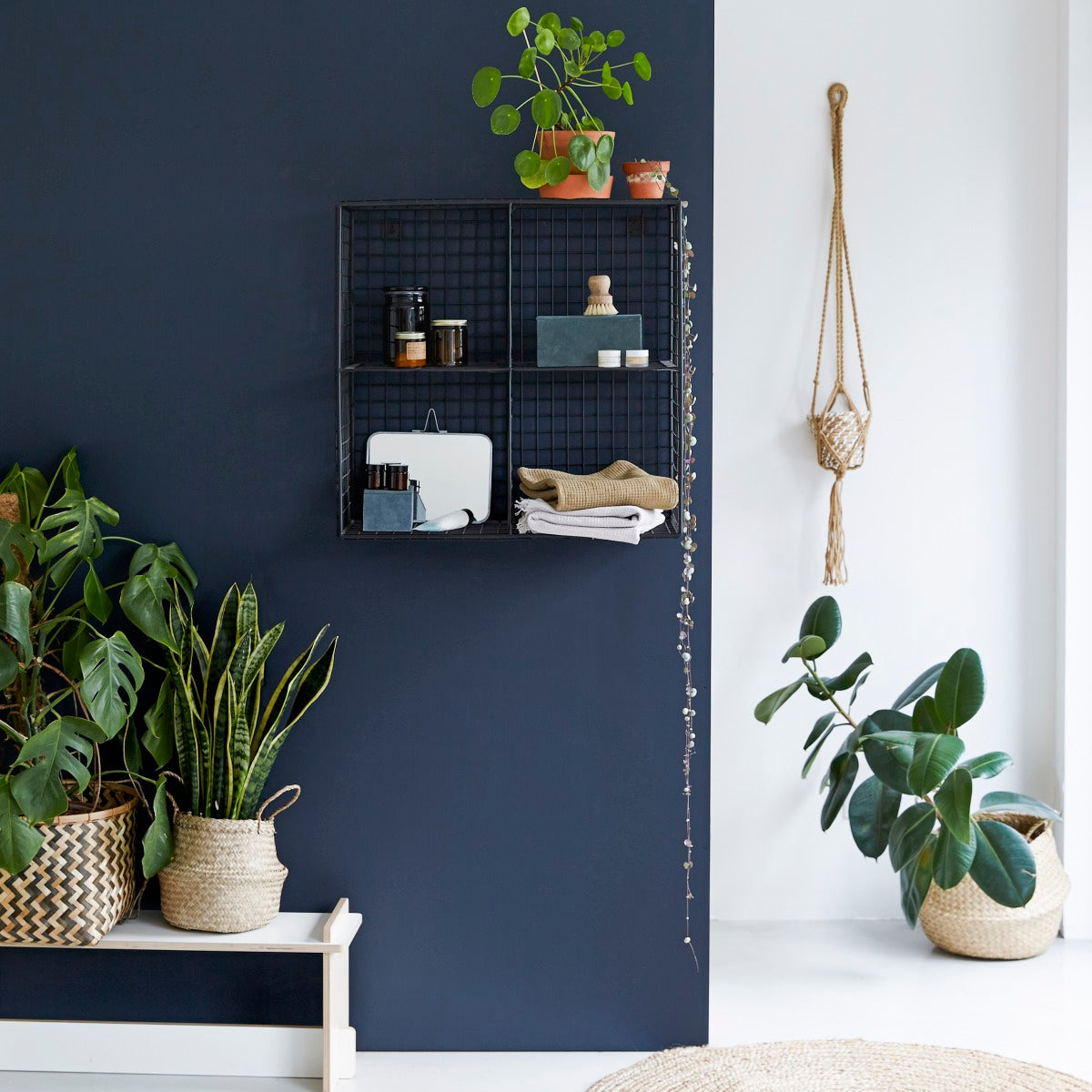 Dit is het vierkante rek, een echte opbergmodule voor aan de wand die eveneens op de vloer kan worden geplaatst. Dankzij de 4 vakken waarin u uw verzorgingsproducten of badtextiel kunt opbergen, is het ideaal om extra veel ruimte te besparen in uw badkamer.