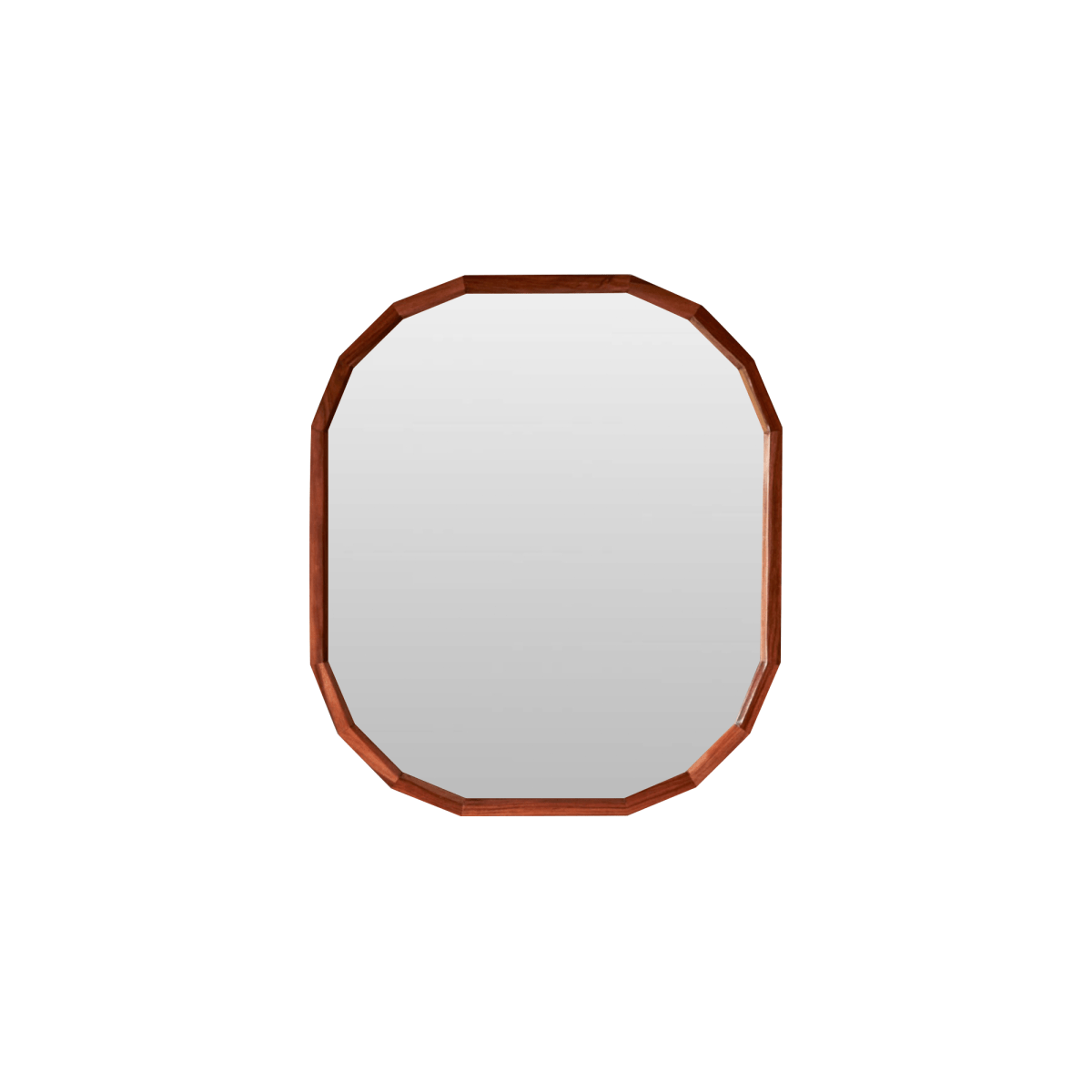 De Jade spiegel in massief palissander combineert stijl met praktisch nut. Met zijn kostbare hout met contrasterende nerven, zijn grafische vorm en gelakte afwerking past hij elegant in de badkamer of andere ruimtes.