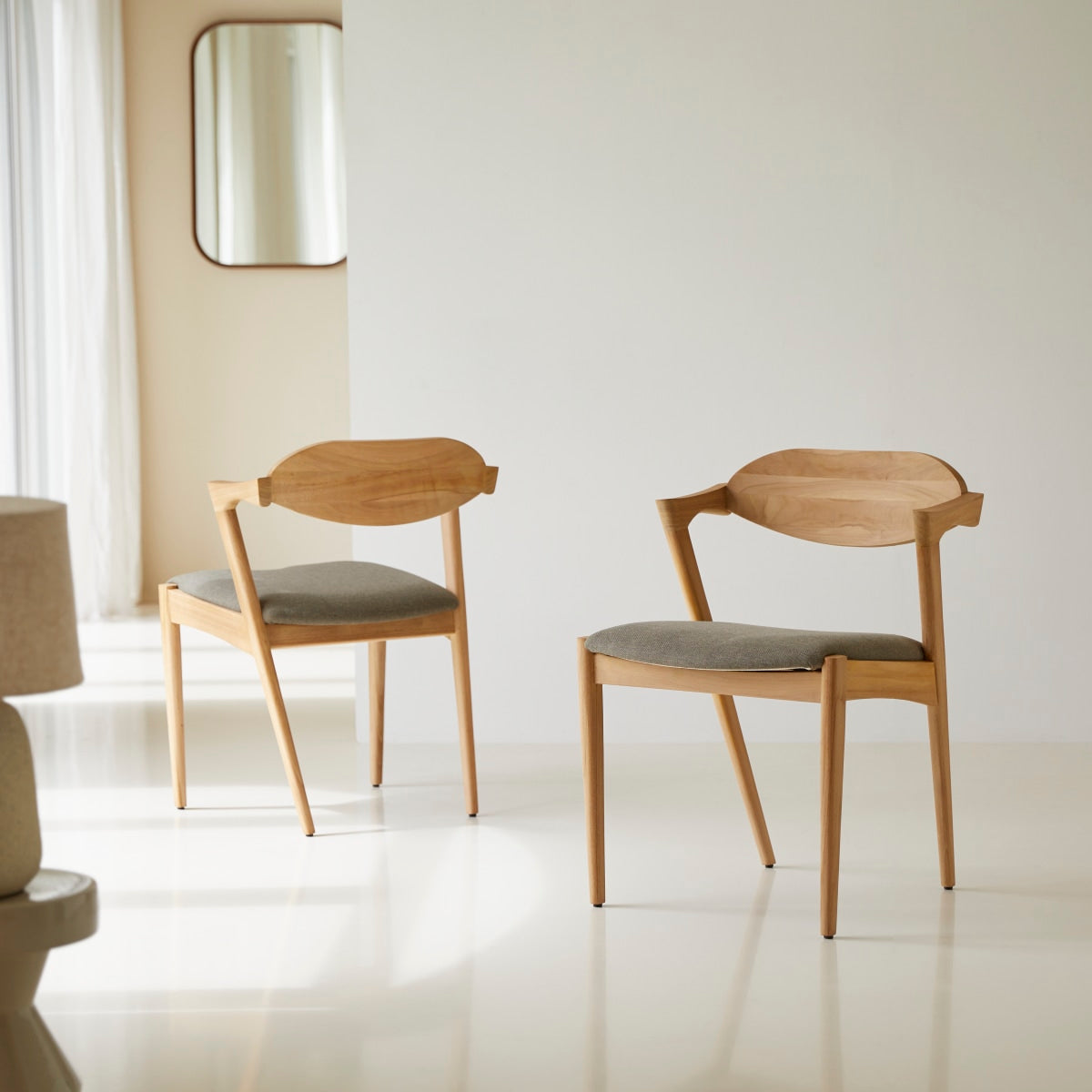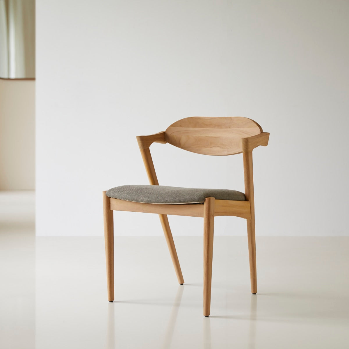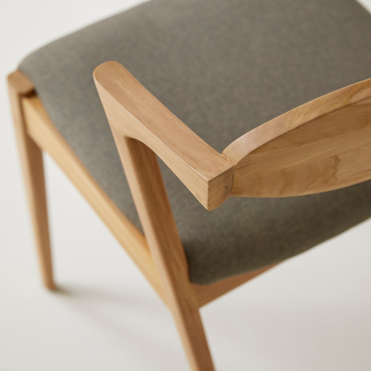 De Guido stoel in lichtgekleurd massief teakhout en stof combineert hedendaags design en comfort met een gewatteerde zitting en gebogen rugleuning. Hij is gemaakt van FSC®-gecertificeerd hout, waarmee hij perfect past in moderne interieurs. Hij is ideaal voor de woonkamer, de slaapkamer, het bureau of de hal. Bekijk ons gamma meubels in hedendaagse stijl.