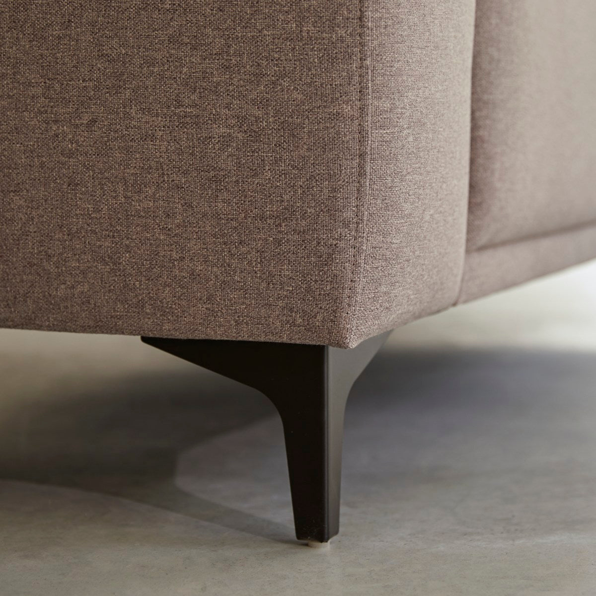 Hij is samengesteld uit een frame van grenen met daarop een zitting van taupegrijze stof voor een verfijnde en elegante uitstraling. De bank heeft ook metalen poten.