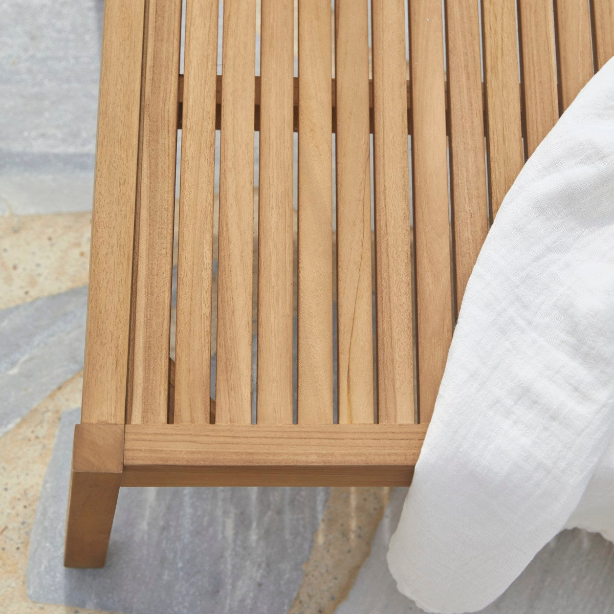 Het Teo ligbed van massief FSC®-gecertificeerd teakhout combineert comfort en elegantie. Het is perfect voor buiten of in een serre en kan worden gecombineerd met andere stukken uit de Teo of Hedendaagse collectie om een verfijnde ruimte te creëren. Een ideale keuze voor warme zomerdagen.
