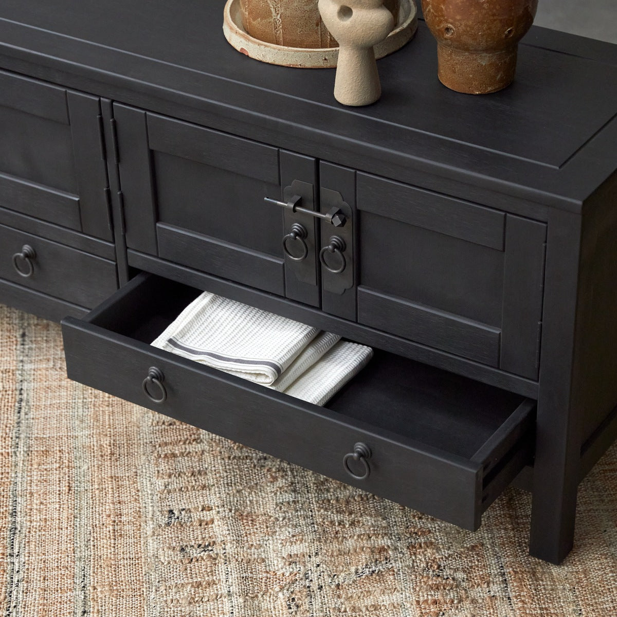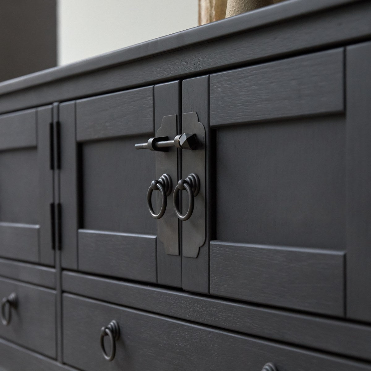 Dit tv-meubel is onderdeel van de Thaki black collectie: zwarte meubels, oosterse inspiratie voor een zeer rustgevend interieur!