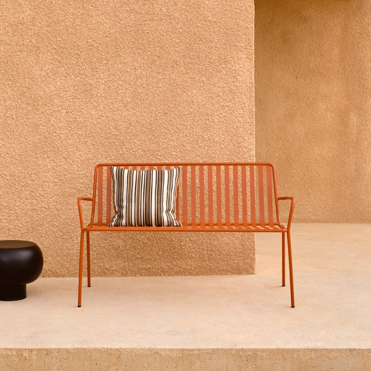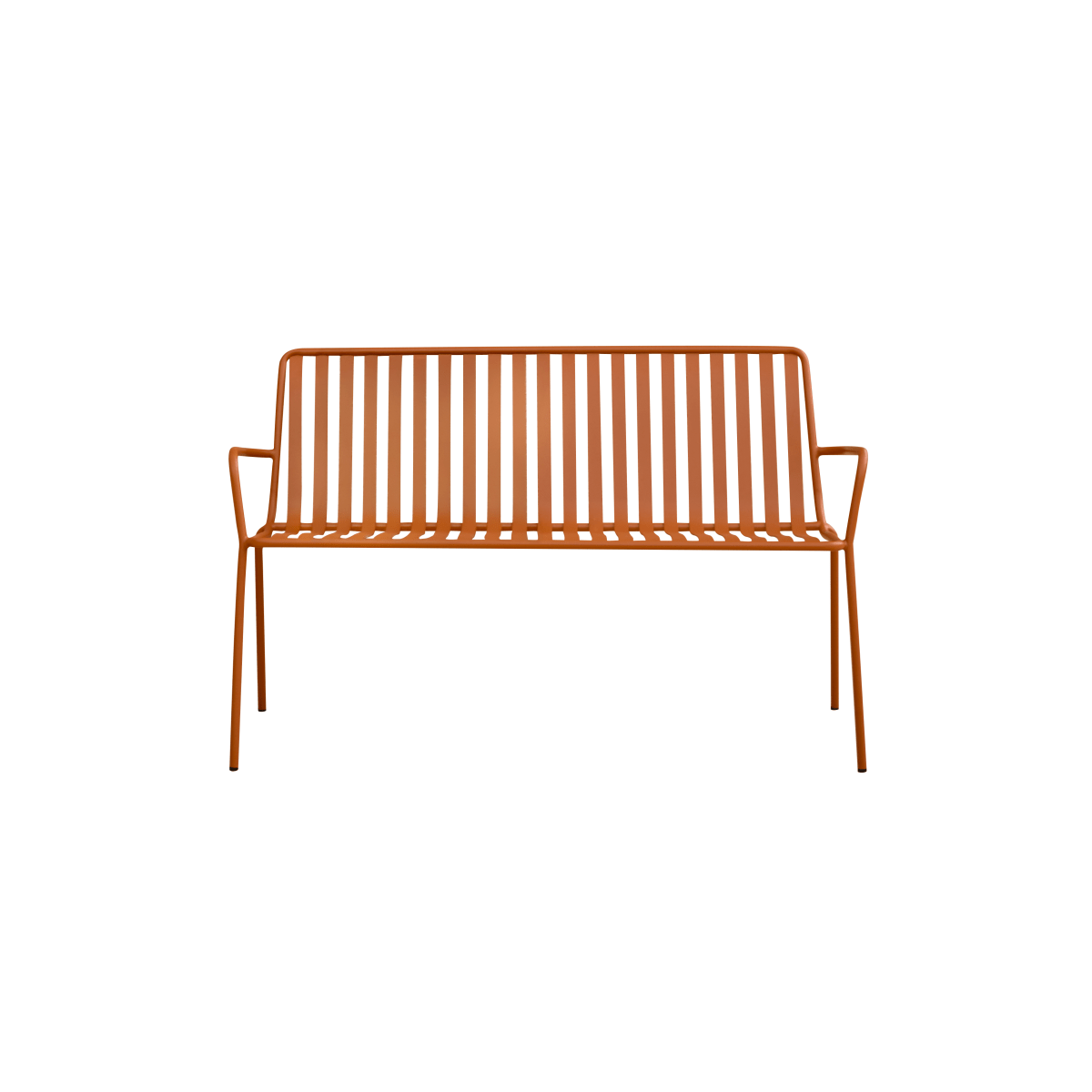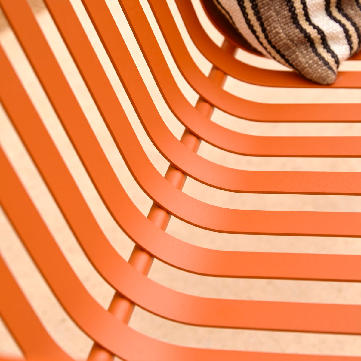 De Gaby tuinbank van oranje metaal staat geweldig in elke ruimte, zowel binnen als buiten! Het verfijnde ontwerp, de gedurfde en duurzame lak en de matte afwerking maken hem tot een veelzijdige must-have voor uw interieur.