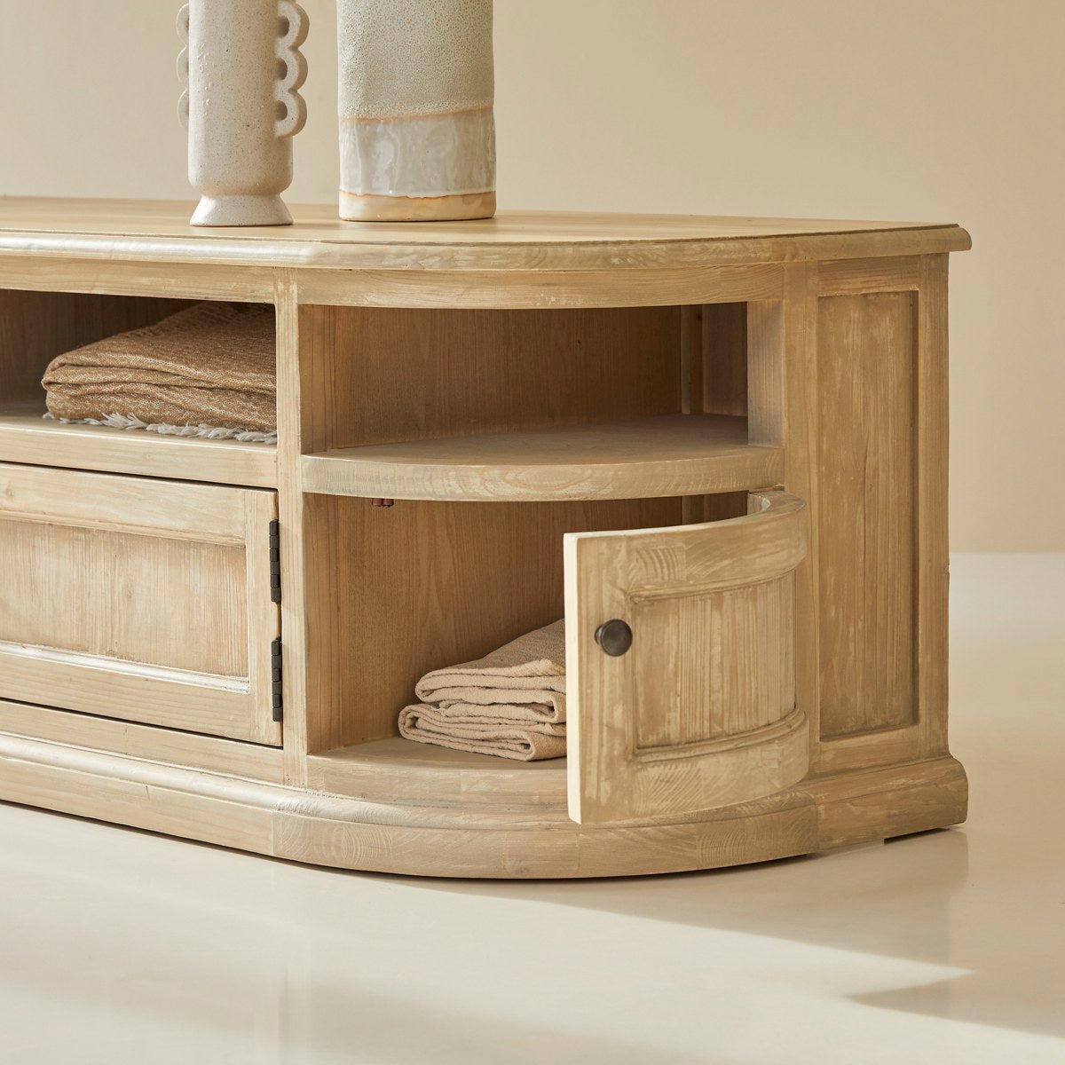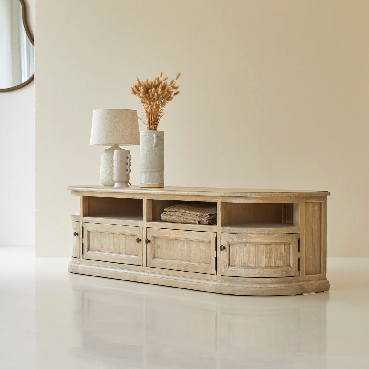 Het grenen tv-meubel Celeste met FSC®-certificaat, een zeer groot meubel voor de woonkamer, van het merk Tikamoon!