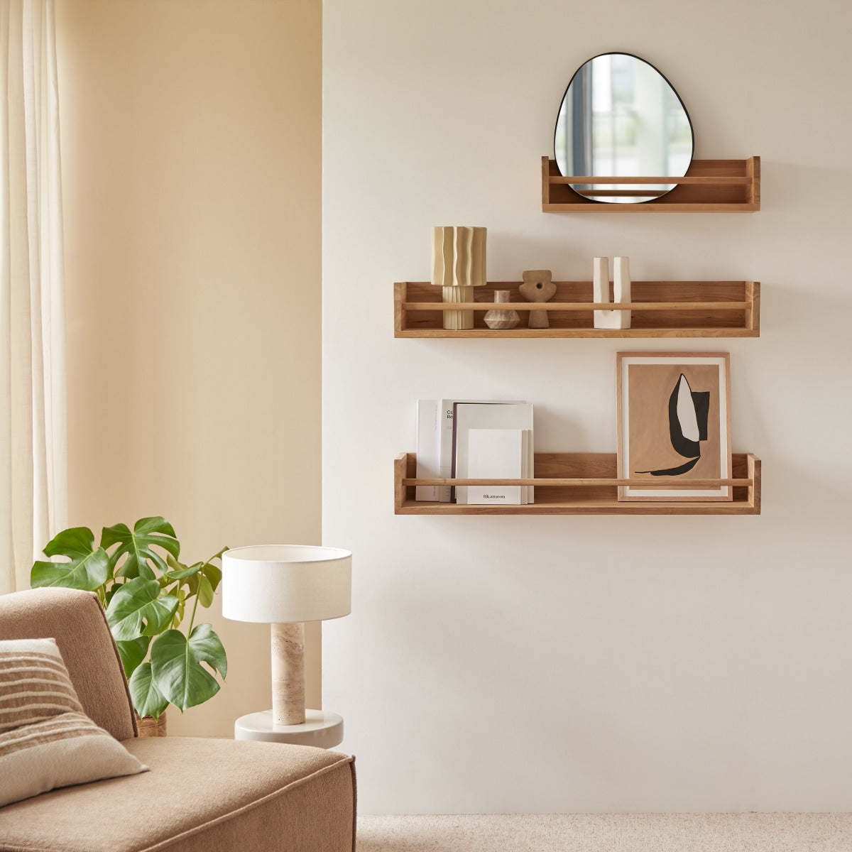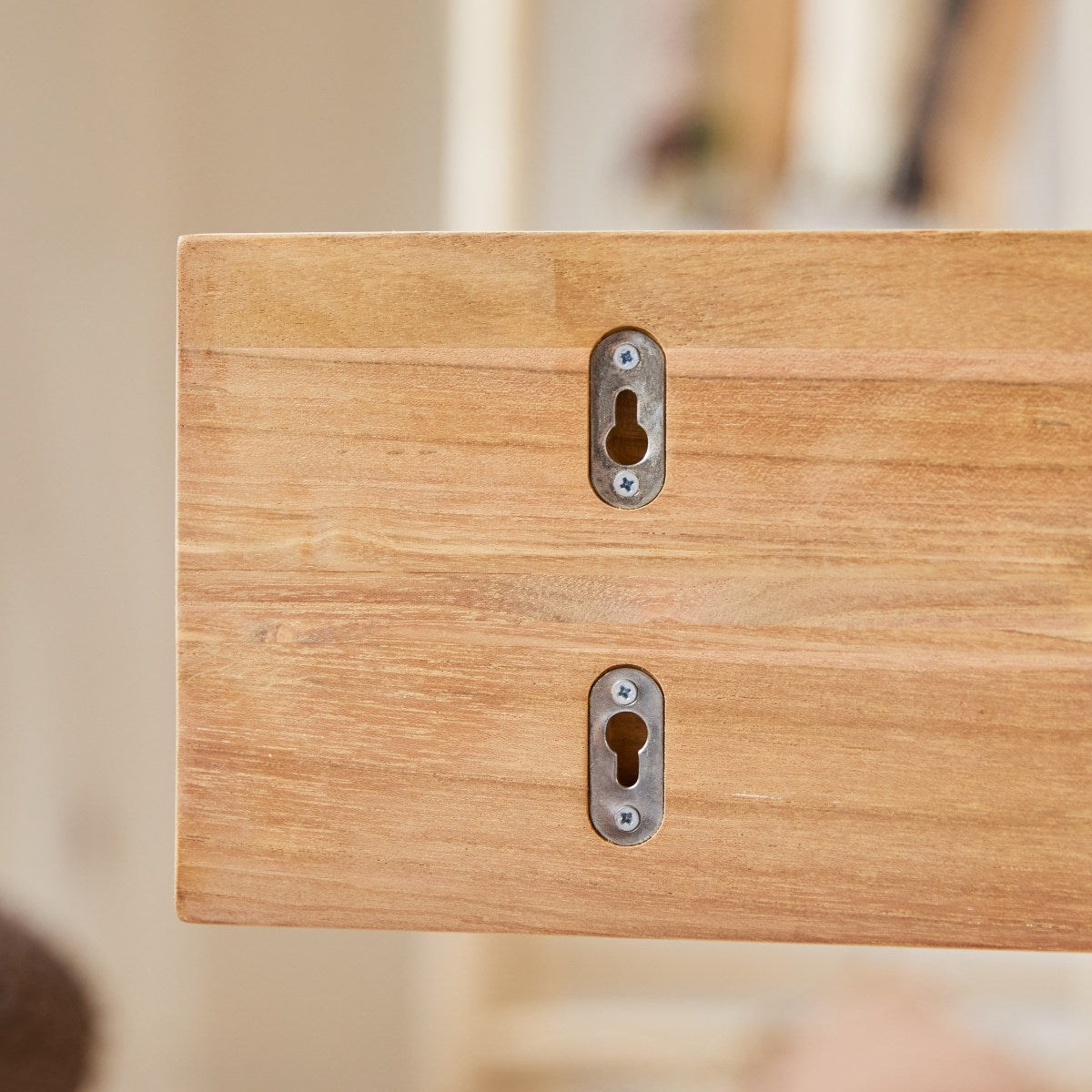 De massief teakhouten wandplank Ugo 100 kan ook worden geïnstalleerd als handdoekenrek, bijvoorbeeld in het wastafelgedeelte van de slaapkamer. Ook handig in de speelkamer of in de studeerkamer.