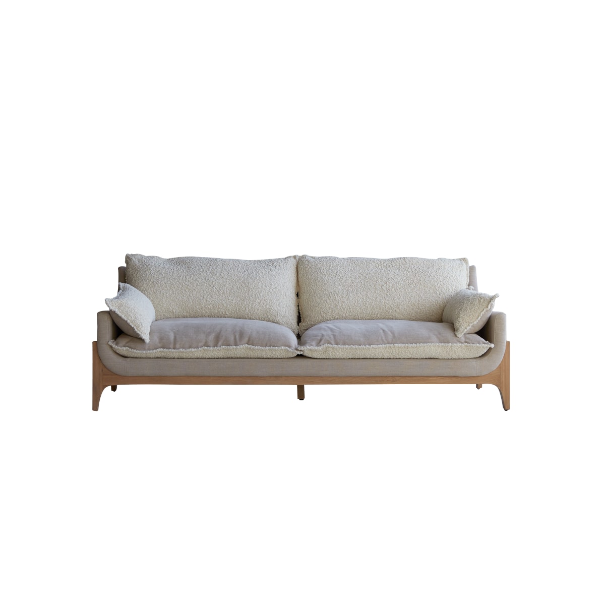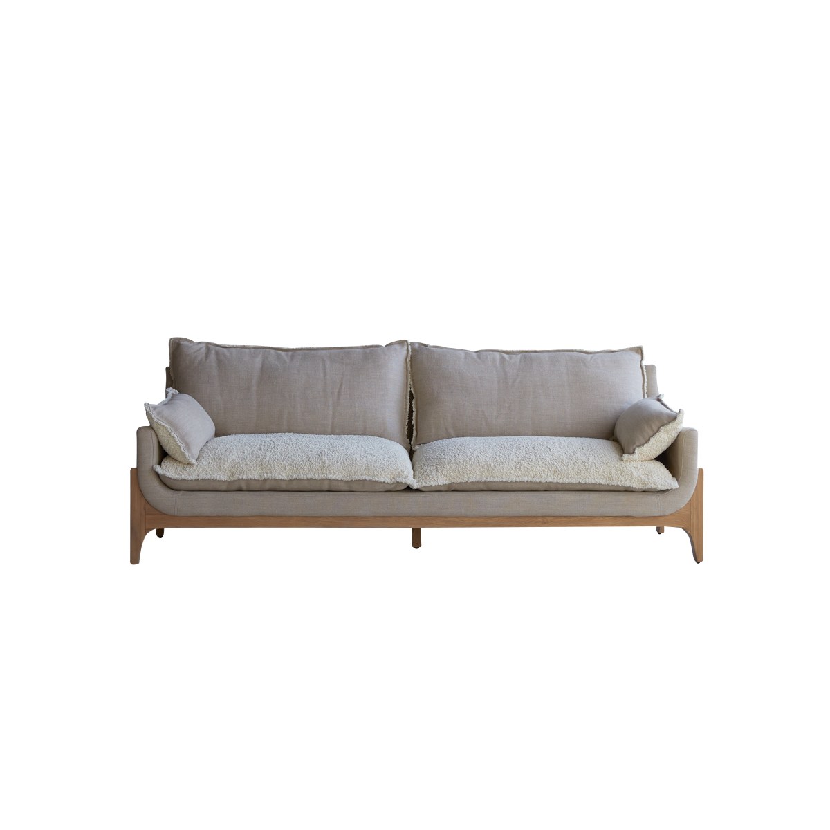 De bank Woodnest in massief eiken en linnen van Bleu Nature, vormt het middelpunt van de woonkamer, en heeft aantrekkelijke zachte rondingen, eersteklas kwaliteit en comfort. Hij is elegant en stijlvol en kan worden aangepast aan uw behoeften en wensen. De kussens zijn omkeerbaar, dus u hoeft ze alleen maar om te draaien om ze te verjongen: bij mooi weer legt u de linnen kant erop voor de frisheid en in de winter de bouclé kant om te cocoonen. De bank Woodnest van Bleu Nature, ideaal voor lange avonden met familie en vrienden, is gevuld met ganzenveren en afgewerkt met een glanslaag. Combineer hem met een of twee fauteuils uit dezelfde collectie om een woonkamer te creëren die zowel eigentijds als tijdloos is!