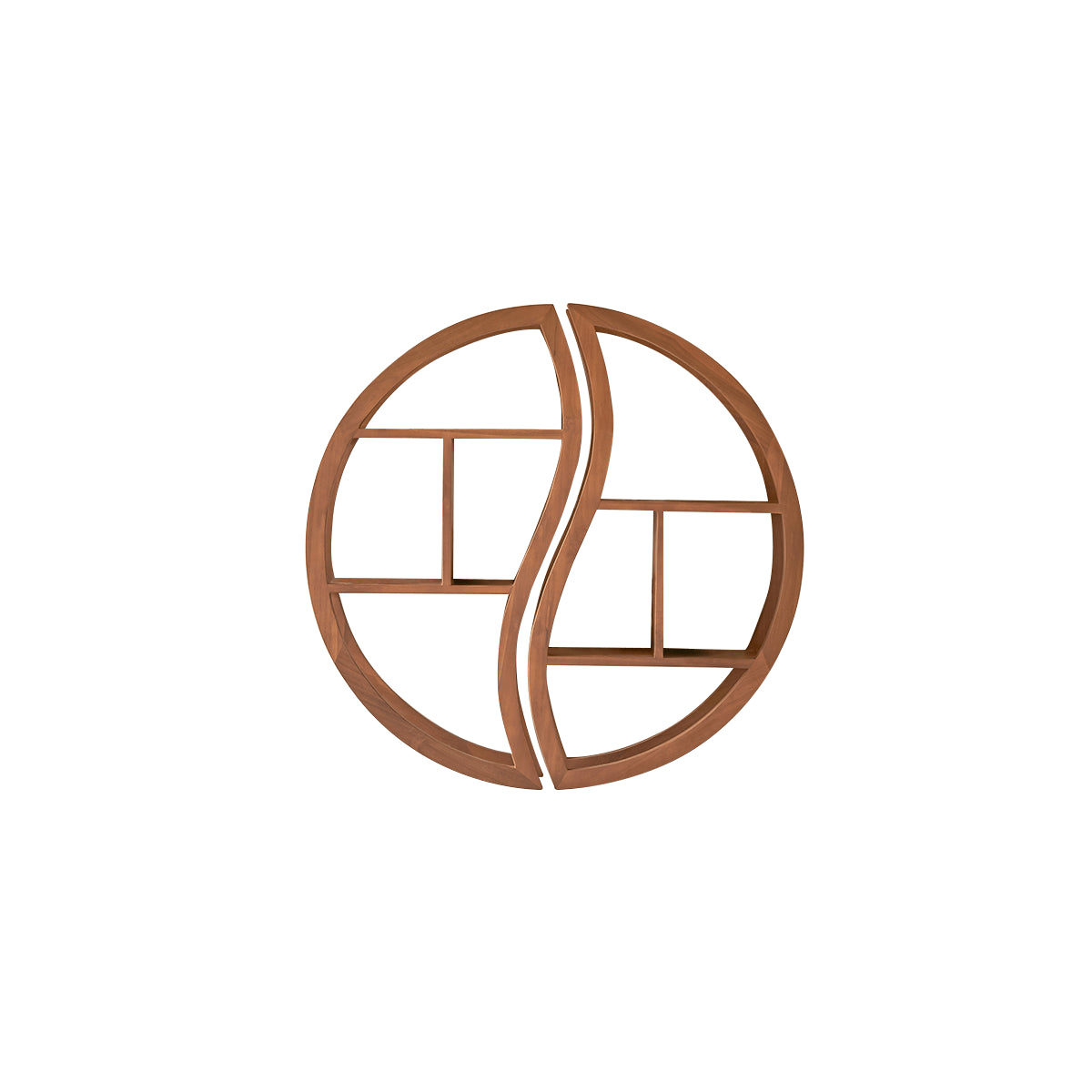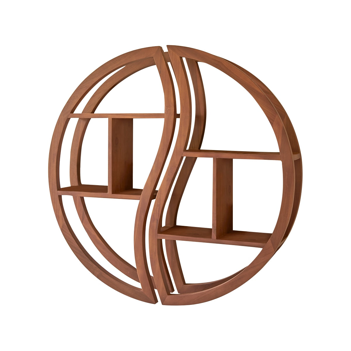 Mooie kleine boekenkast van massief hout voor aan de muur, bestaande uit 2 delen (1). Geïnspireerd door het 'yin-yang' symbool voor sereniteit en elegantie in uw huis. Op de plank kunt u al uw boeken en prullaria kwijt. Aarzel niet om onze bi ying yang boekenkast te bekijken voor een volledig harmonieuze inrichting! (1) elk bestaande uit 4 vakken