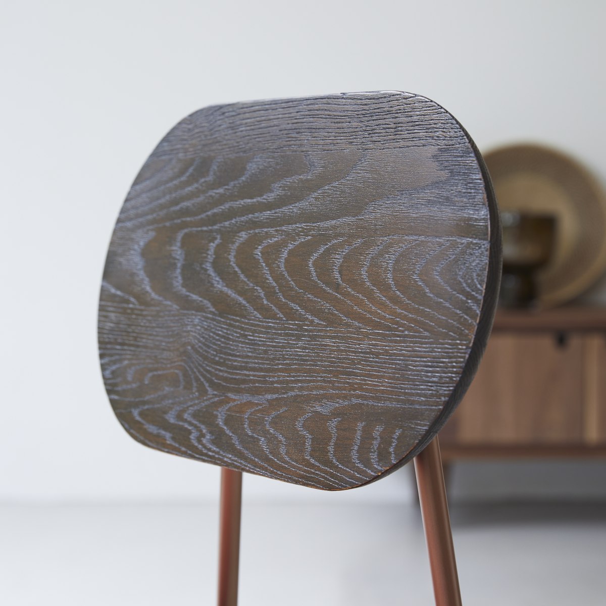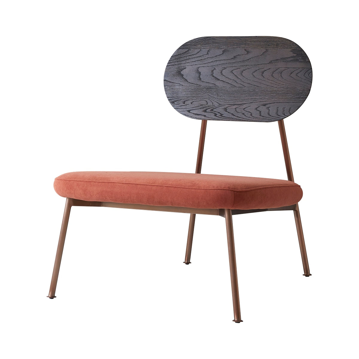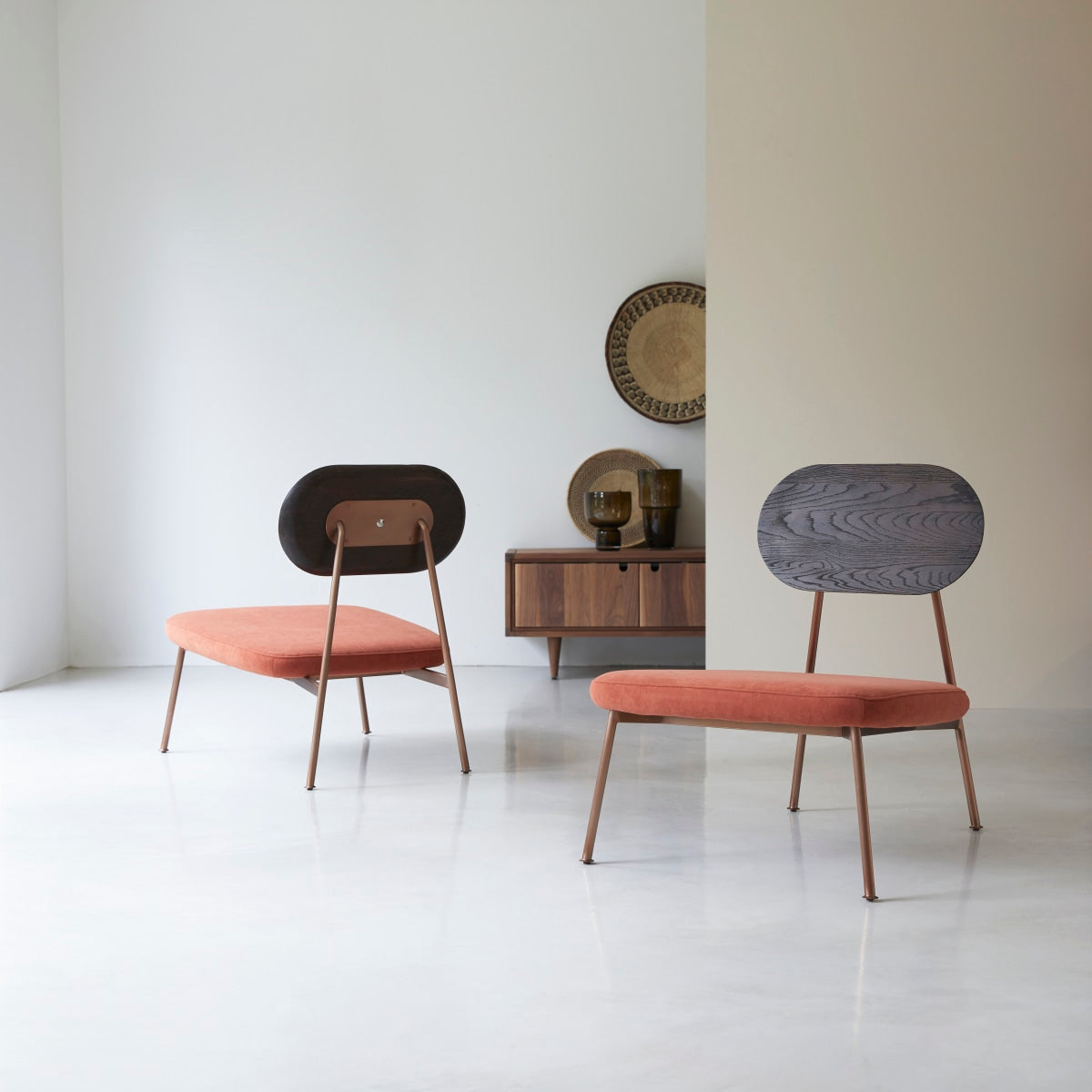 De look van een schoolstoeltje met chique en karaktervolle accenten: De Yutapi Sienna lage eiken fauteuil van Bleu Nature biedt de ultra-premium kwaliteit van zorgvuldig geselecteerde materialen om een meubel met resoluut eigentijdse charme te creëren. Het donkere eiken van de rugleuning druist bewust in tegen de zachtheid van het terracottakleurige fluweel en de verfijning van het geborstelde koperen onderstel: Het resultaat is een meubel voor dagelijks gebruik dat ook een decoratief element op zich wordt!