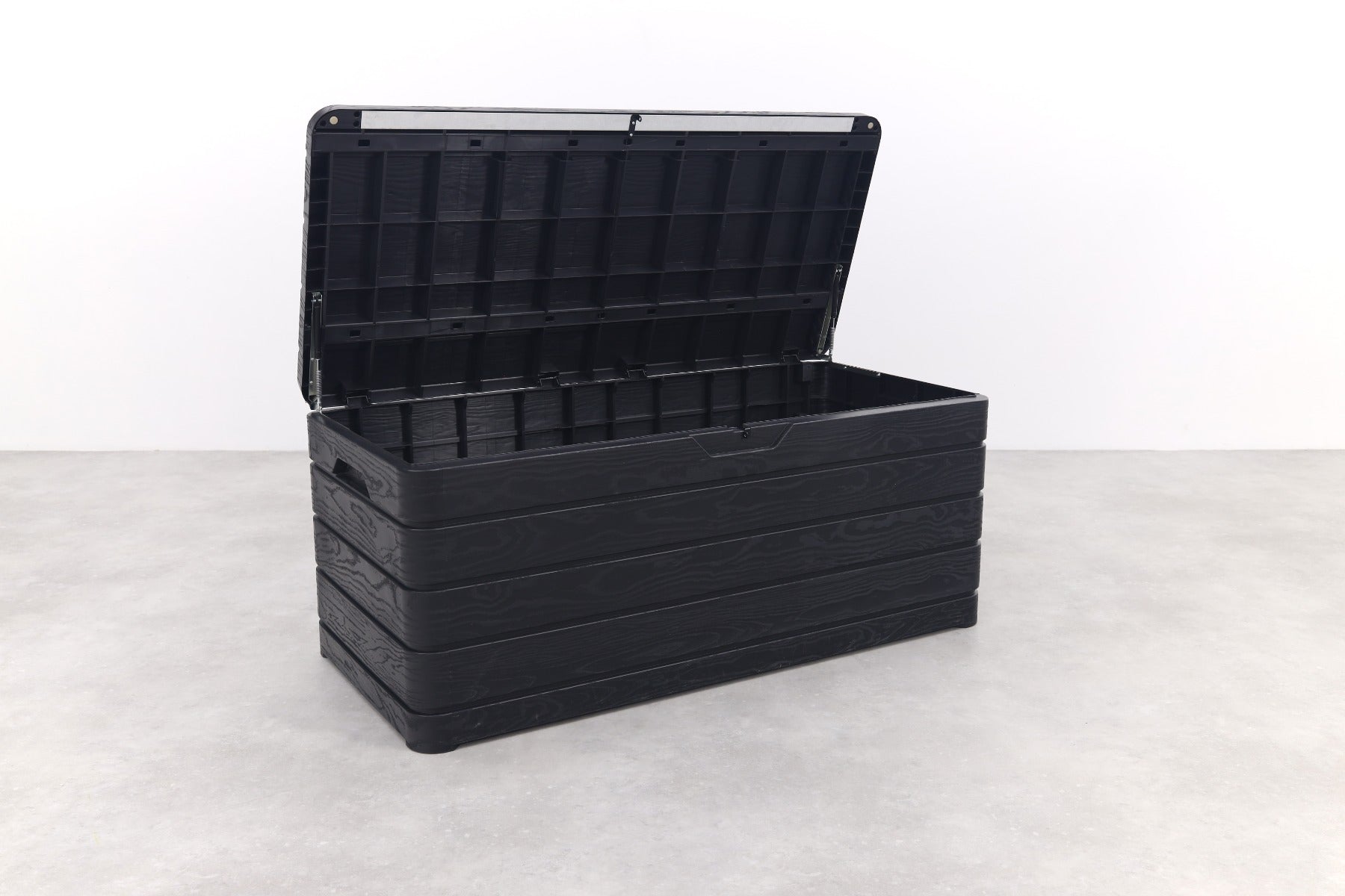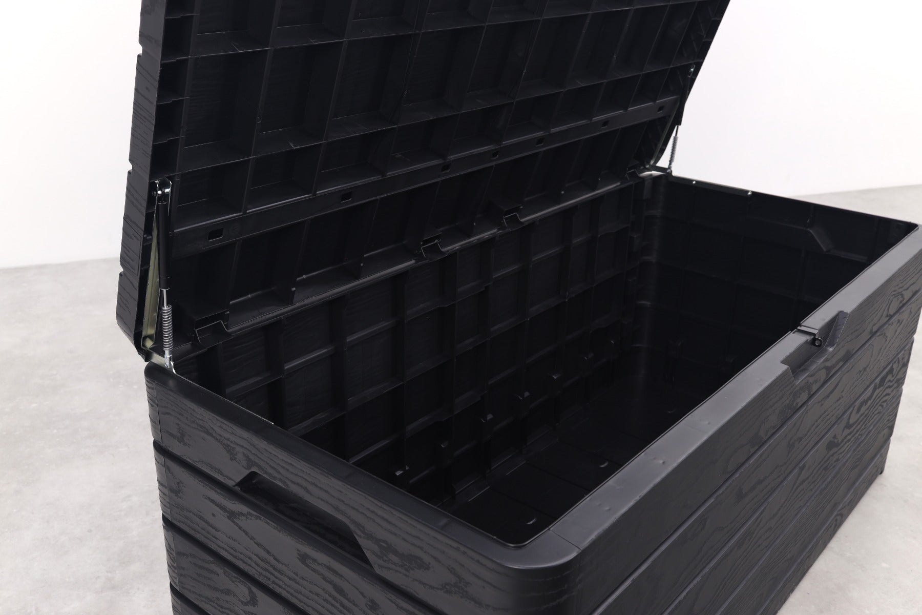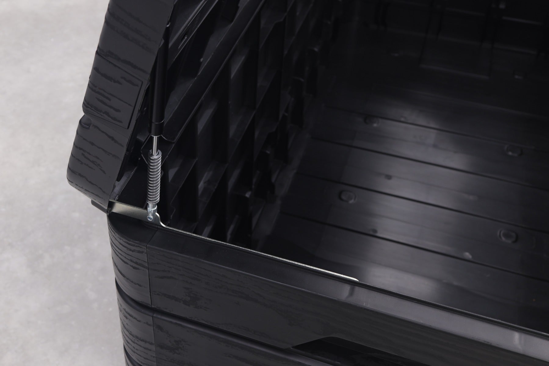 Het lichte kunststof maakt de box gemakkelijk te verplaatsen, zeker met de ingebouwde handgrepen. Dankzij de gasveer opent de deksel soepel en blijft deze moeiteloos open staan tijdens gebruik. De opbergbox is eenvoudig in elkaar te zetten zonder gereedschap dankzij de handige kliksystemen.