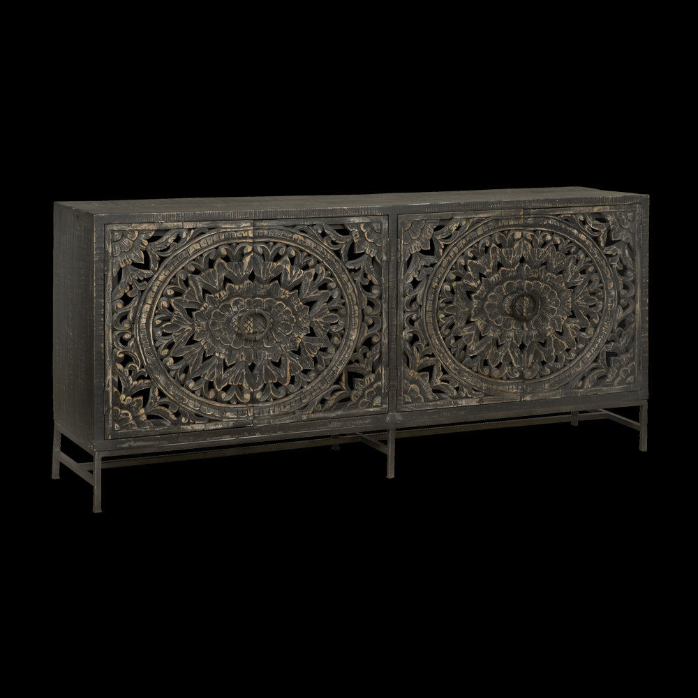 Tower Living | Casina Dressoir met 4 deurtjes | Teakhout | Zwart | 200