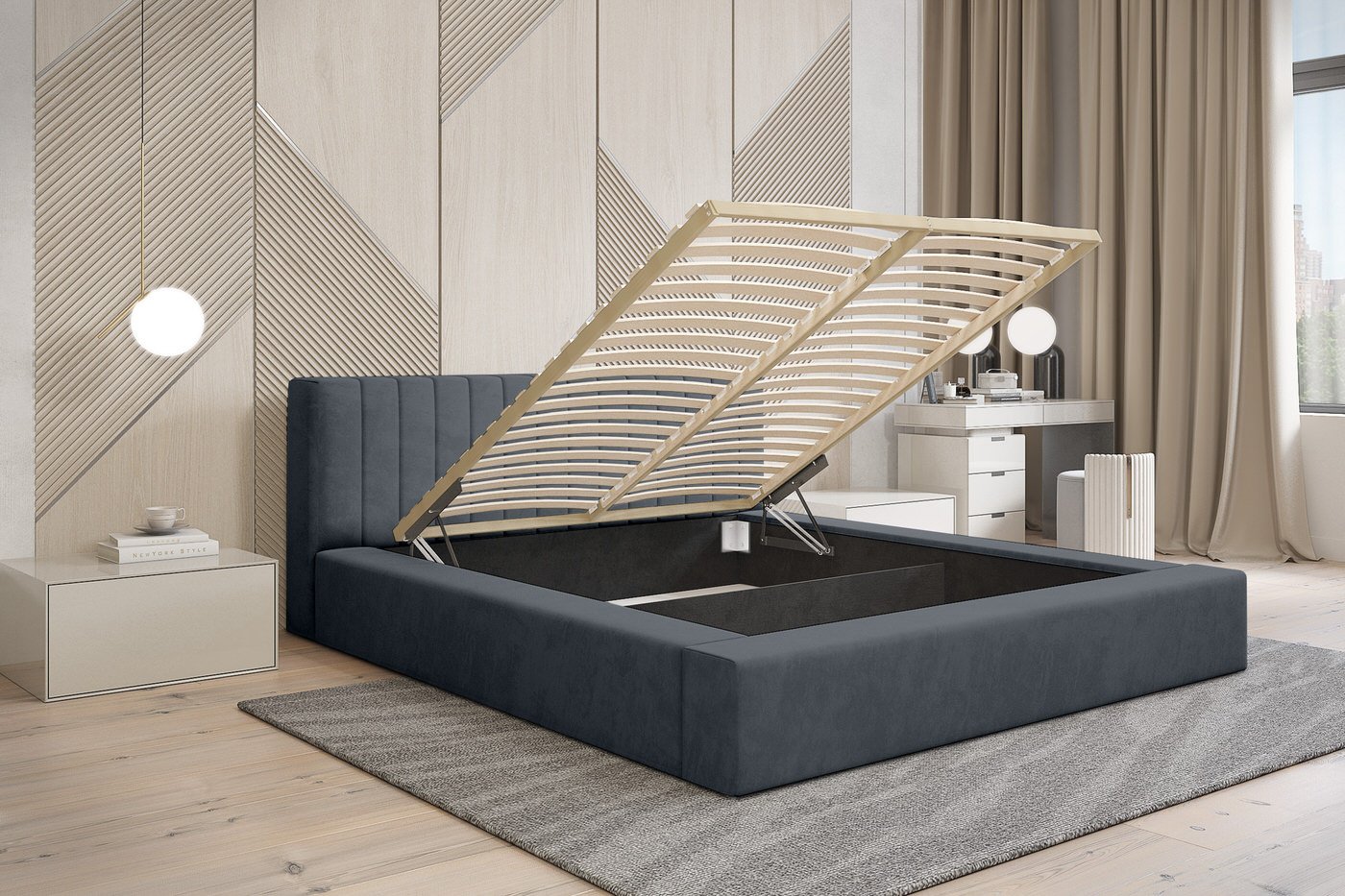 Trae Mobler Como 140 x 200 cm Gestoffeerd Bed Donkerblauw