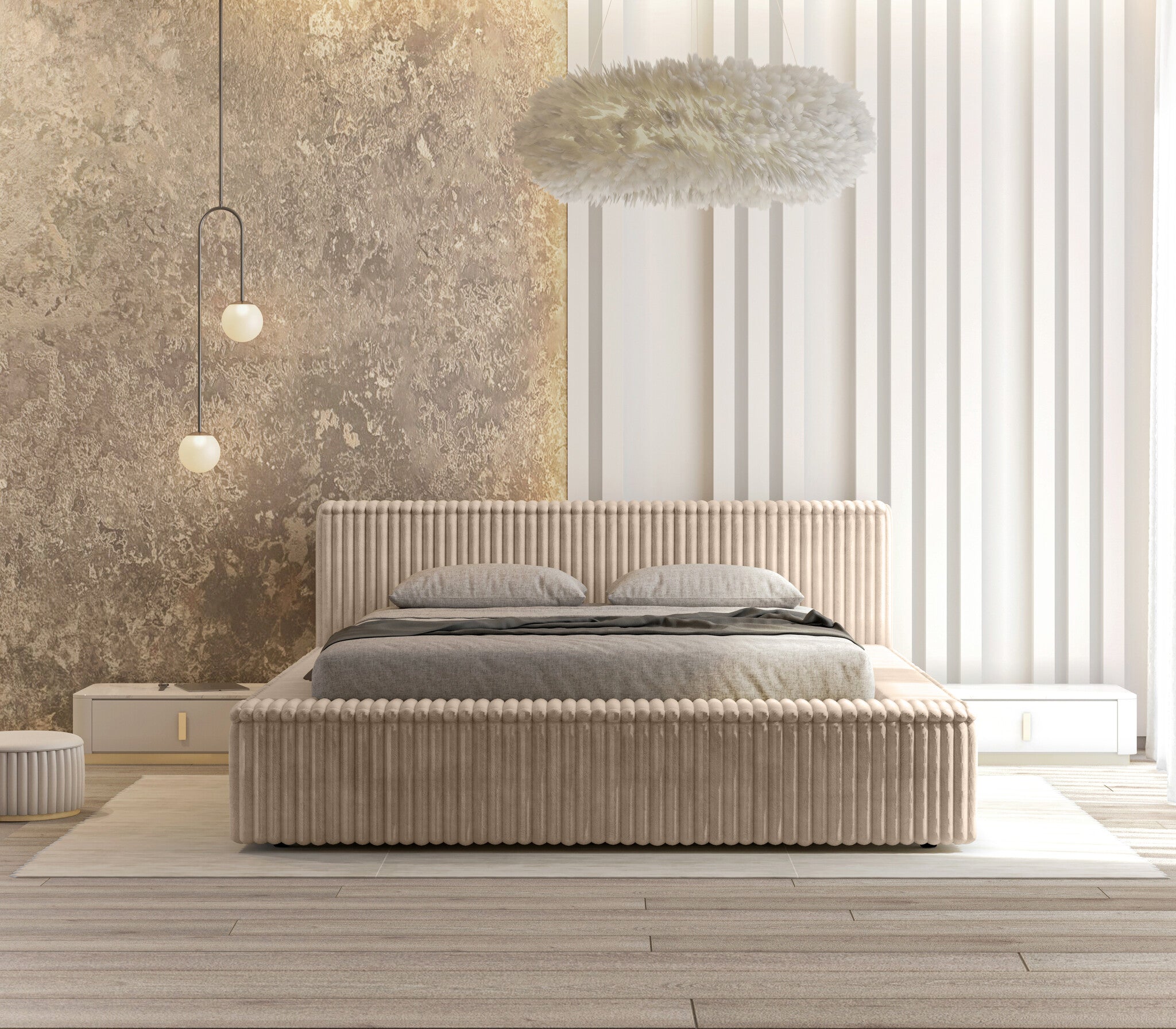 Trae Mobler Melody 140 x 200 cm Gestoffeerd Bed Beige