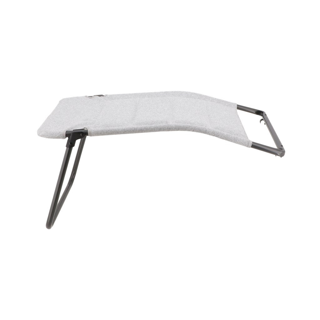 De bekleding van de Travellife Bloomingdale voetenbank Comfort is gemaakt van lichtgrijs polyester. Polyester is een ademende stof. Dat bekent dat vocht niet wordt opgenomen. Maak je dus geen zorgen om een regenbui, de voetenbank droogt snel! De lichtgrijze kleur van de bekleding zorgt ervoor dat de voetensteun niet snel heet wordt in de zon. Bovendien is de stof water- en vuilafstotend. In combinatie met het antracietkleurige frame heeft de Bloomingdale serie een moderne uitstraling.