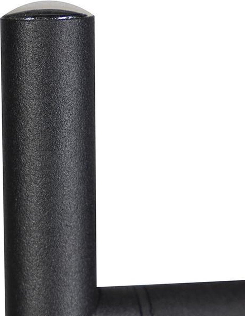 De moderne vloerlamp heeft de kleur zwart en is gemaakt van metaal.