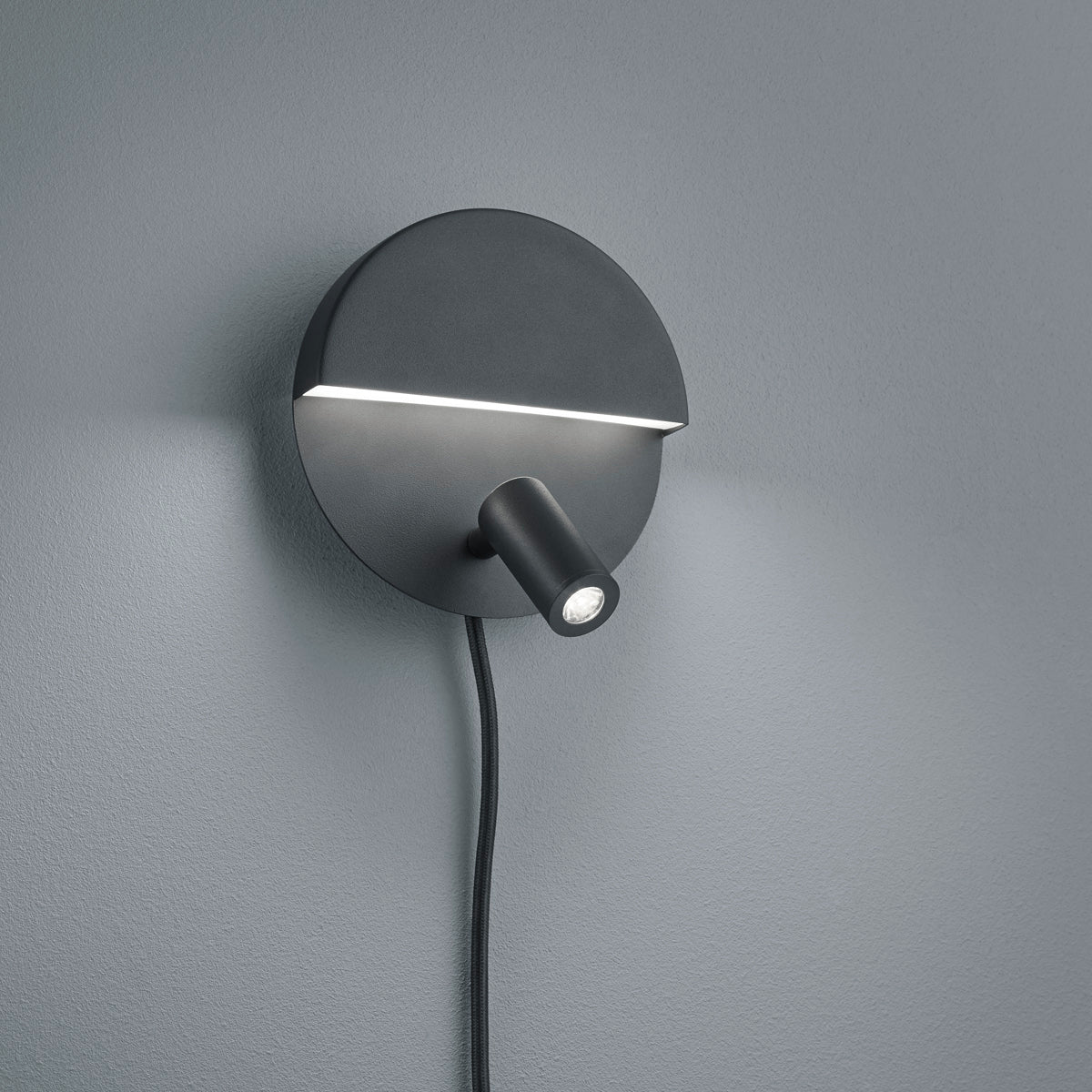 Trio Leuchten Mario wandlamp - met leeslampje - LED ingebouwd - mat zwart - rond
