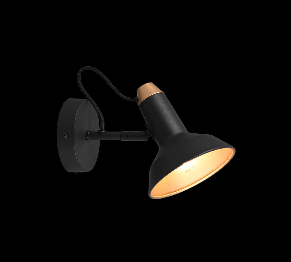 Deze matzwarte enkele spot uit de serie Roxie is 10cm breed, 22cm hoog en 15cm diep.Dit armatuur is uitsluitend voor wandmontage geschikt. Let op! lamp(en) niet meegeleverd.