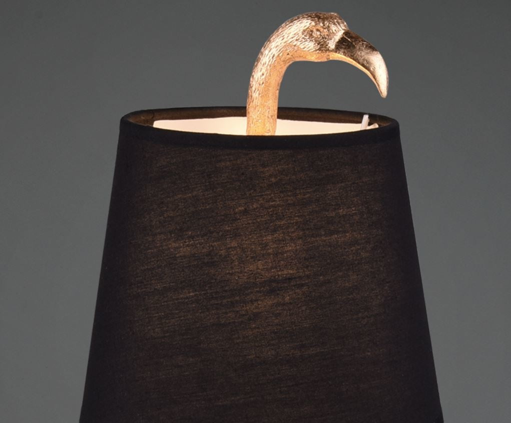 Wat een super trendy tafellamp is deze Lola schemerlamp van Trio Leuchten! De flamingo is rosé goud van kleur en de kap is zwart met een witte pvc binnenkant.