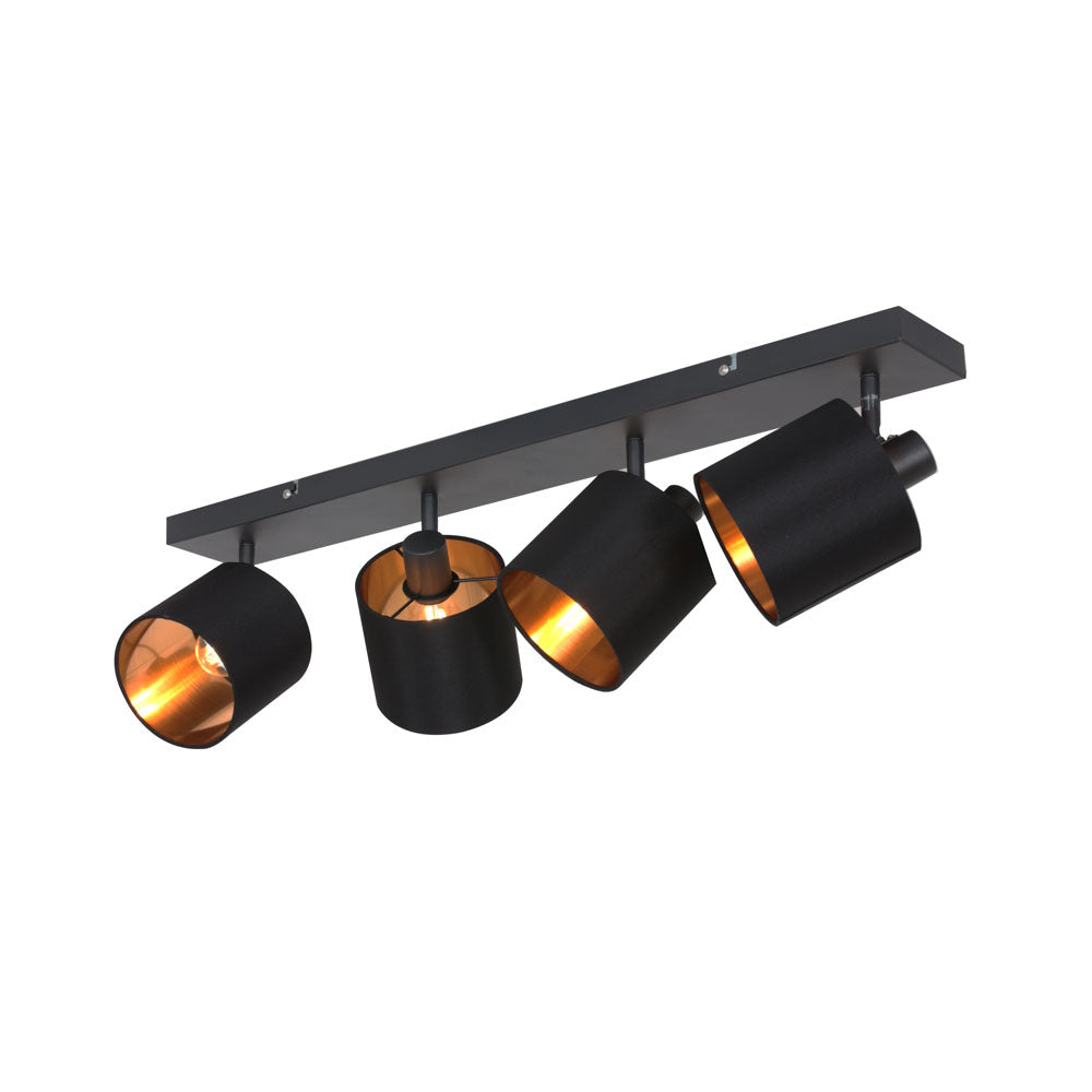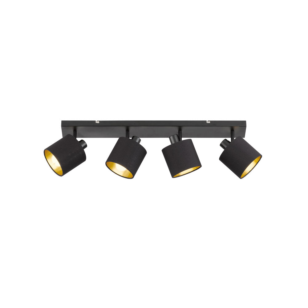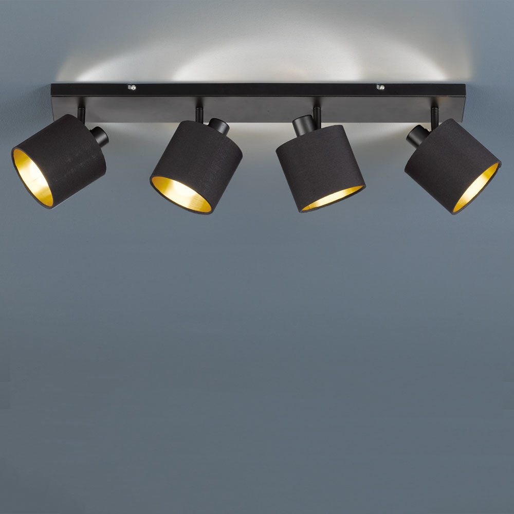 Trio Leuchten Tommy plafondlamp zwart en goud vierlichts 70 cm breed